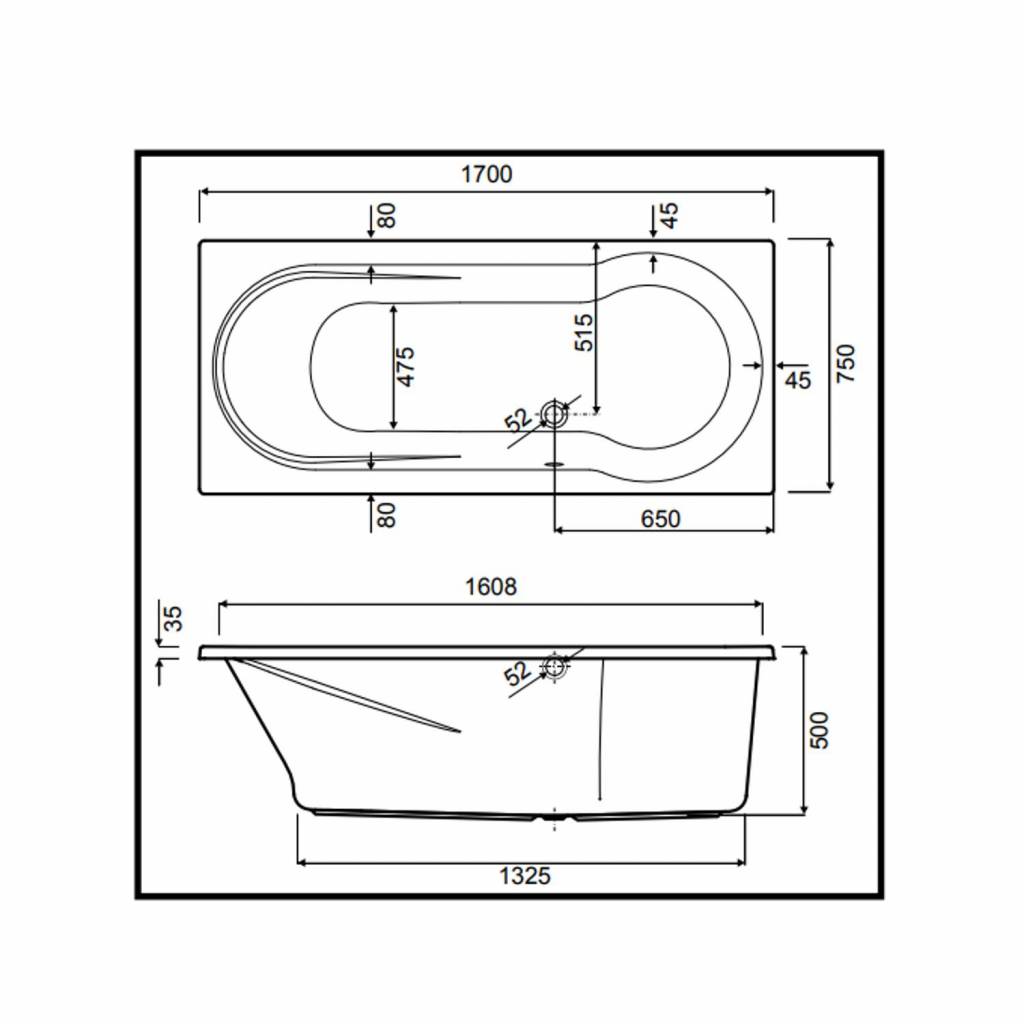 Inbouw Duo Ligbad Wisa New Fontana 170x75x50 cm Wit