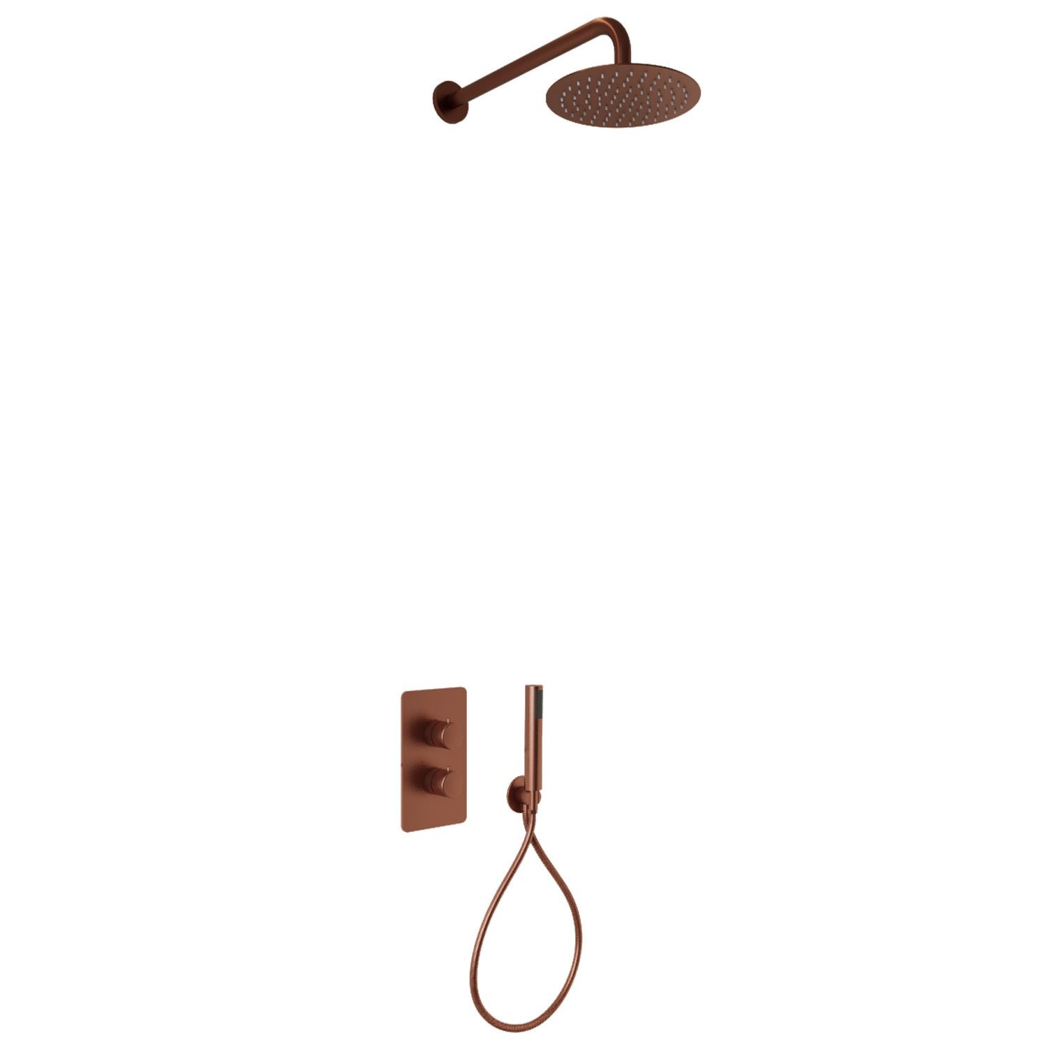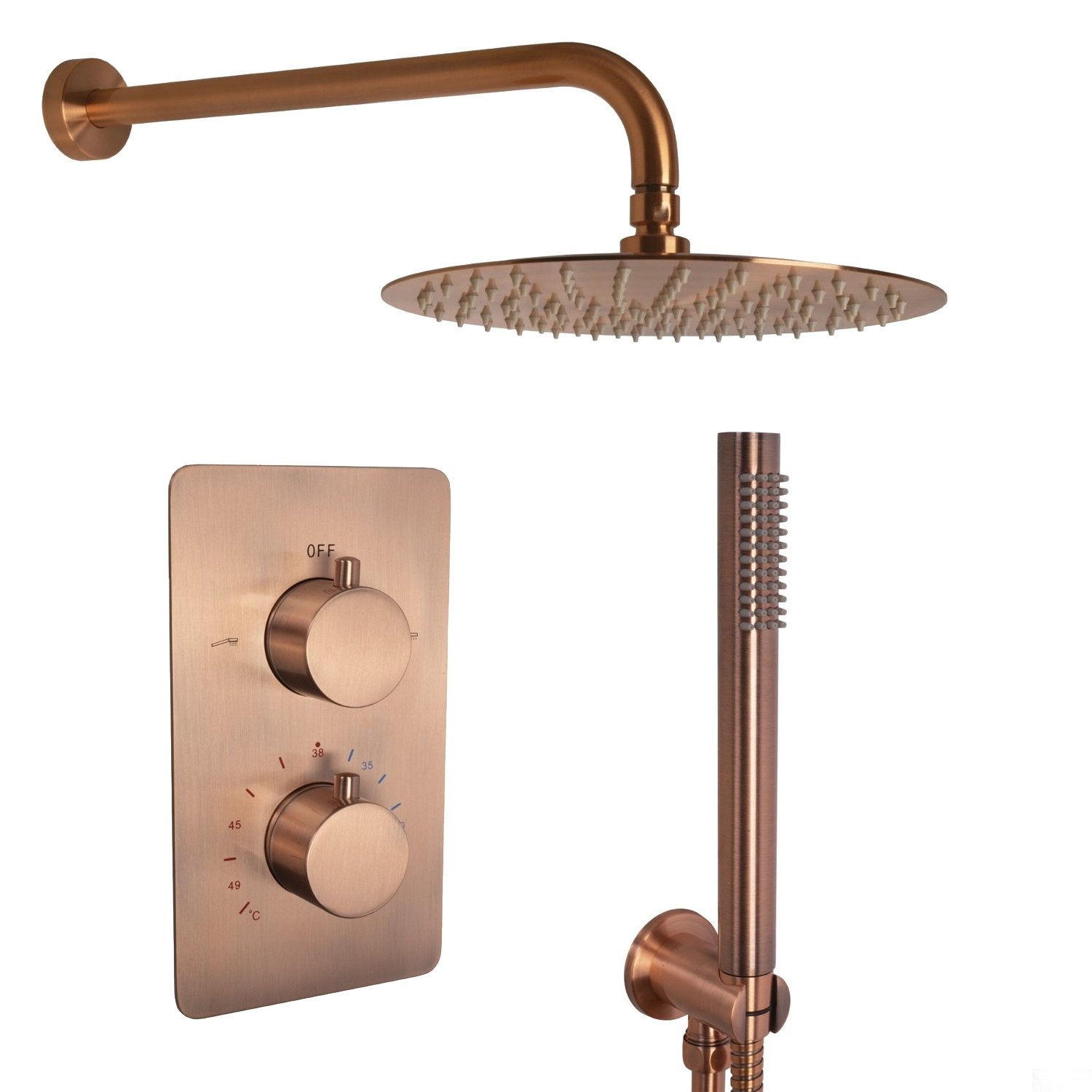 Met de inbouw regendoucheset Colorato van het merk Aqua Splash haalt u een complete doucheset in huis! De inbouw regendoucheset bestaat uit een thermostatische kraan, een wanduitloop met een ronde hoofddouche en een handdoucheset. Alle elementen uit de Colorato inbouw regendoucheset zijn gemaakt van messing en kennen een afwerking in een geborstelde koper kleur.