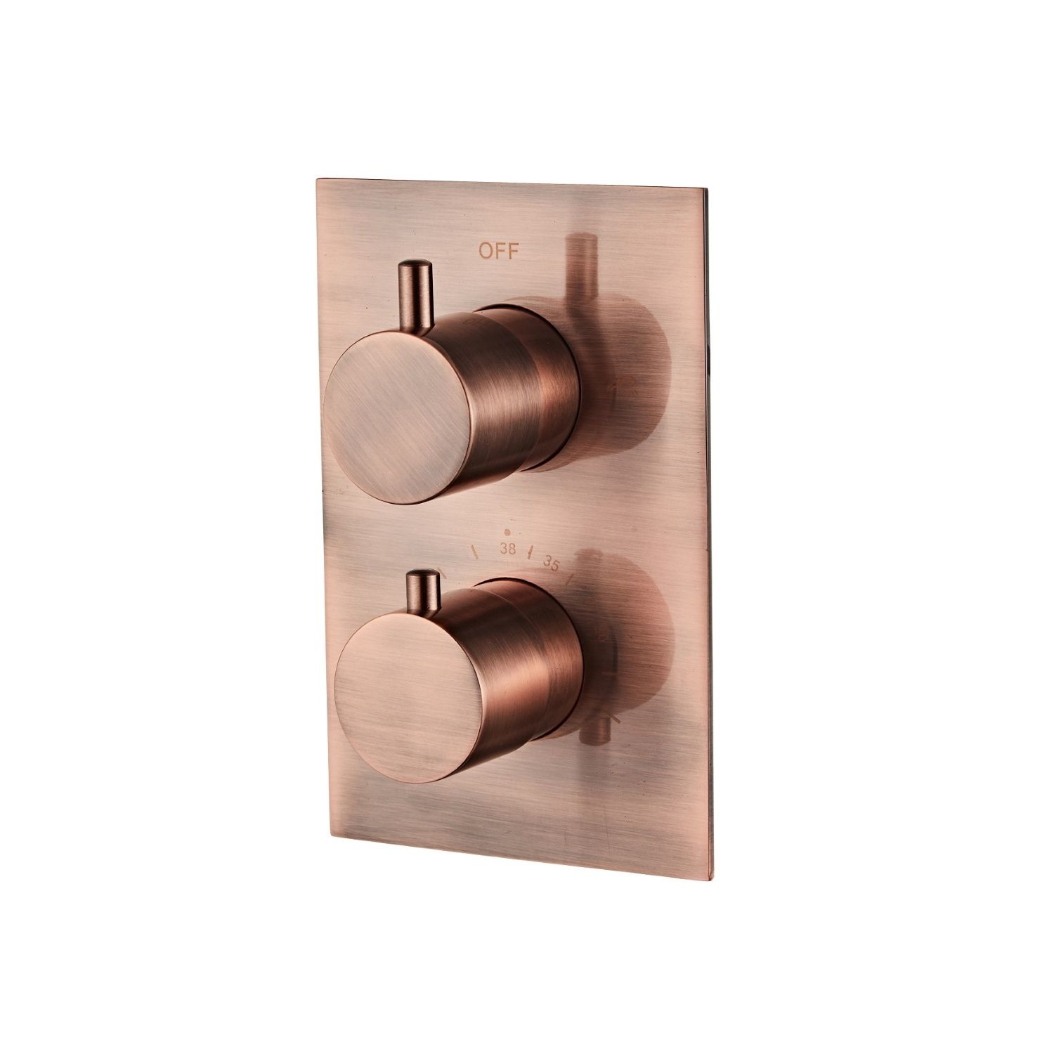 De Copper inbouw regendoucheset van het merk Boss & Wessing wordt gekenmerkt door de bijzondere afwerking in een geborsteld koperen kleur. De inbouw regendoucheset bestaat uit een thermostatische kraan, een plafonduitloop, een ronde douchekop en een handdoucheset. De artikelen zijn vervaardigd uit hoogwaardig messing. Messing heeft als kenmerk dat het uitstekend geschikt is voor gebruik in vochtige ruimtes, waardoor een lange levensduur van deze regendoucheset gegarandeerd is!