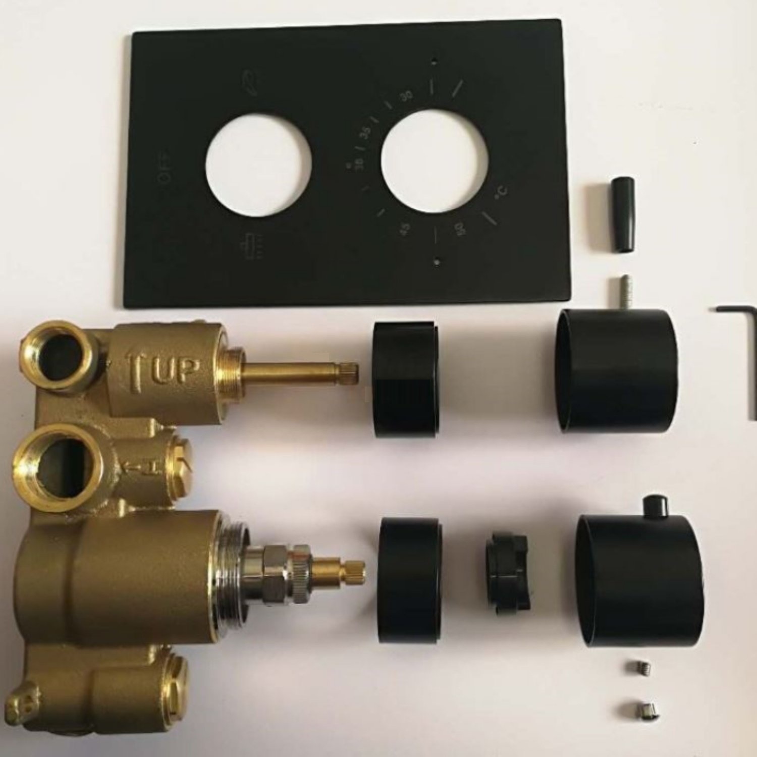 De Boss & Wessing inbouw regendoucheset is een fraaie toevoeging aan uw badkamerruimte. Het betreft een inbouw regendoucheset die is gemaakt van messing en een afwerking heeft in een mat zwarte kleur. Dat maakt deze regendoucheset uitstekend geschikt voor zowel een moderne als een industriële badkamer. De set bestaat uit een ronde hoofddouche, een inbouw thermostaatkraan, een ronde wanduitloop, een handdouche inclusief houder en een doucheslang.