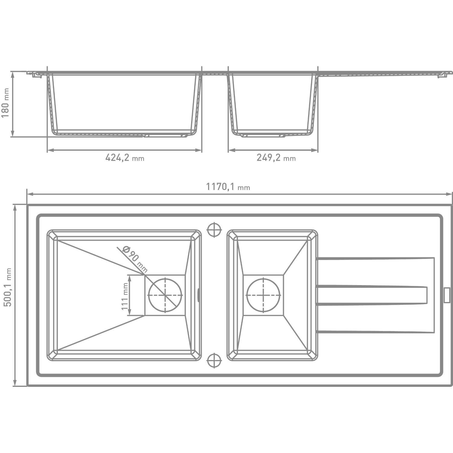 De spoeltafel Molto 117x50 van het merk Van Marcke go is een inbouwspoeltafel in hoogwaardig mineralen en polyesterhars. Deze spoeltafel beschikt over 2 spoelbakken met afdruipplaat en waterkeringskant.
