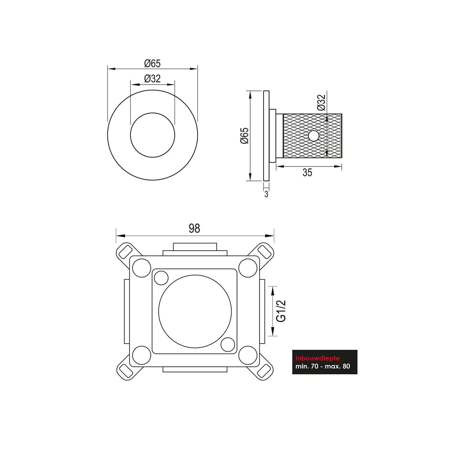 De inbouw stopkraan van het merk Brauer bevat een ronde rozet en knop en is gemaakt van Black messing. Het wordt voorgemonteerd geleverd met een montagehandleiding voor een soepele installatie. U bent met de Brauer inbouw stopkraan niet beperkt tot het gebruik van 2 stopkranen. U kunt de inbouwkraan onbeperkt aan elkaar koppelen waardoor u veel functies in de badkamer kunt bedienen. De wateraansluiting op de thermostaat is 3/4 en de open/dicht uitgang van de stopkraan is 1/2. De stopkraan bevat nog drie uitgangen met continue doorstroom. De ronde achterplaat heeft een diameter van 6.5 cm. De douchekraan heeft een inbouwdiepte van 6.7 cm.