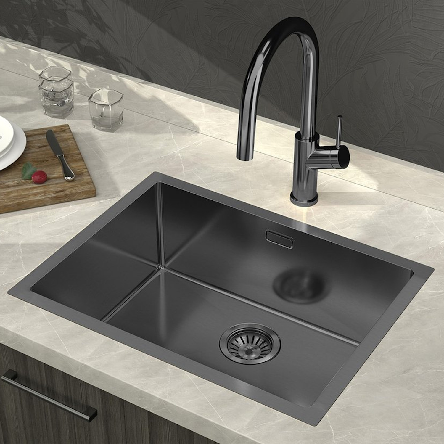 Geef uw keuken of badkamer een mooie upgrade met de Zenith inbouw wastafel van Sapho. Deze wastafel is gemaakt van RVS en heeft een prachtige antracieten kleur. De wasbak heeft een royale afmeting van 60x45 cm en is 19 cm diep. De bodem is schuin afgevlakt richting de afvoer, zodat het water nog makkelijker wegloopt. Verder bevat de wastafel een overloop, dat voorkomt dat het water over de rand kan stromen.