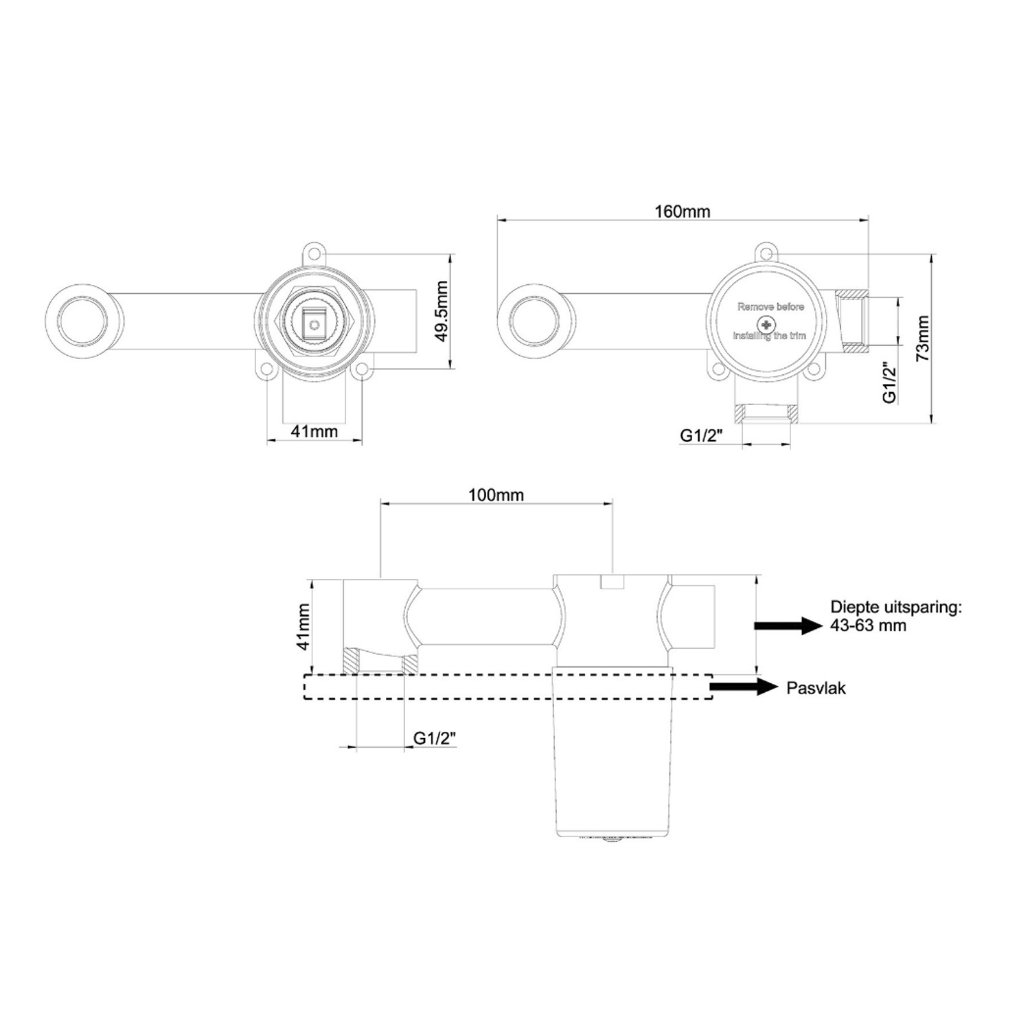 LET OP: Dit product bevat geen afbouwdeel. Het inbouwdeel is uitsluitend te combineren met Caral afbouwdelen voor eenhendel wastafelkranen met coldstart!