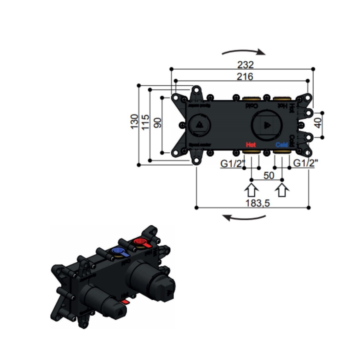 Dit inbouwdeel voor de wastafelmengkraan van Hotbath Gal is geschikt voor een wastafelkraan met 1 hendel. Het inbouwdeel kan in alle mogelijke richtingen geplaatst worden. Dit zorgt ervoor dat de kraan links of rechts van de bediening kan worden geplaatst, maar ook boven of onder de bediening.