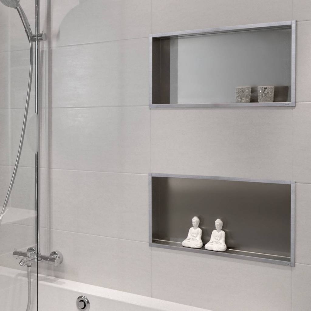 De inbouwnis is een praktische badkameraccessoire voor het opbergen van al uw doucheproducten. Voor extra stijl en design in uw toiletruimte of badkamer kunt u er voor kiezen om een inbouwnis te plaatsen in de muur. Bij een moderne toilet wordt tegenwoordig een inbouwreservoir geplaatst. De ruimte die boven het reservoir openblijft kan worden ingevuld met een RVS inbouwnis.