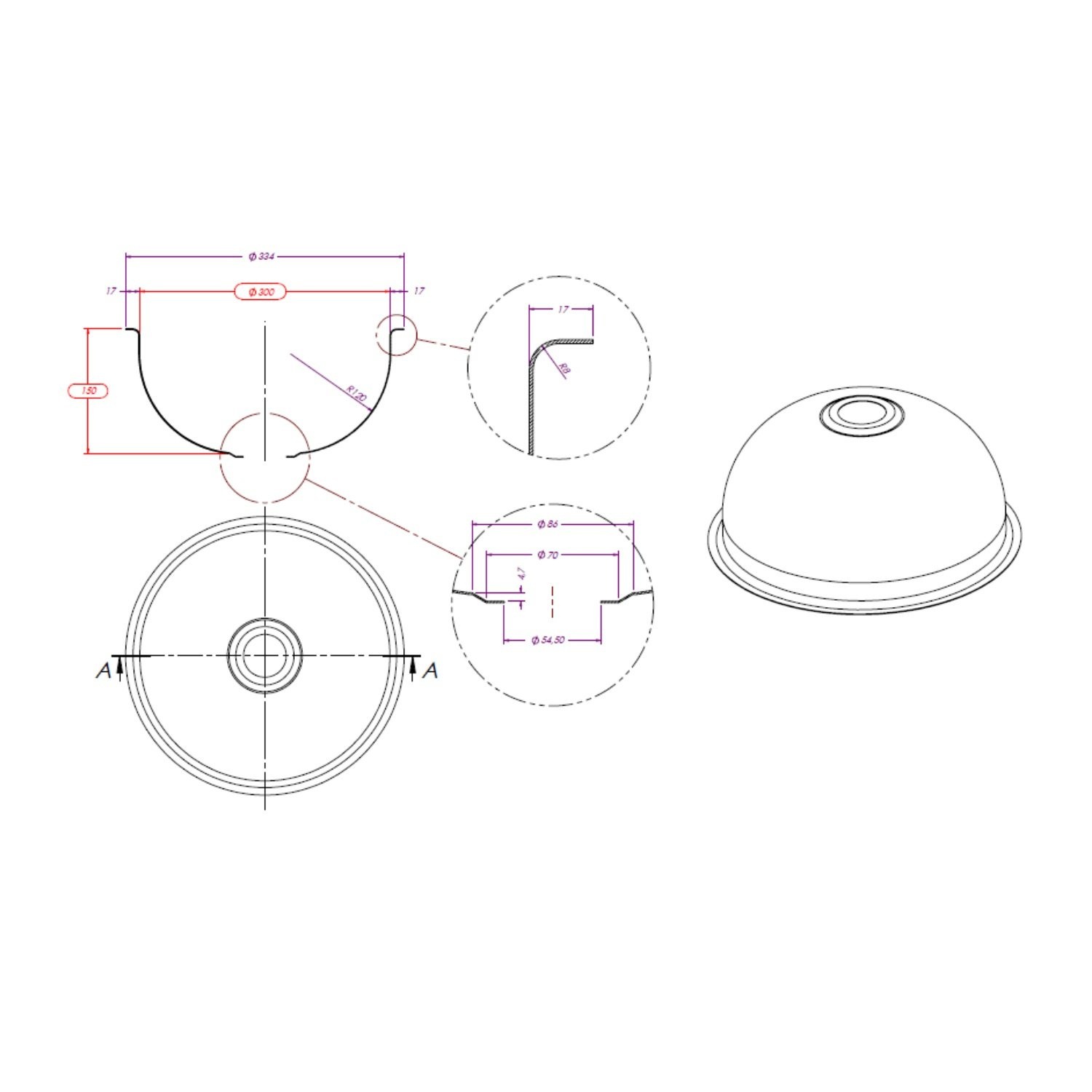 Deze inbouwwastafel is rond en heeft een diepte van 33,5 cm, een breedte van 33,5 cm, en als laatste een hoogte van 14,5 cm. Deze wastafel heeft geen overloop en geen kraangat. Deze inbouwwastafel kunt u inbouwen in de verschillende onderkasten.