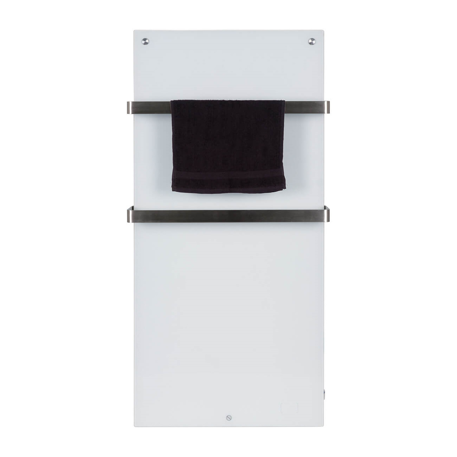 Ook kunt u door middel van dit infraroodpaneel een warme handdoek krijgen voor na het douchen, er zitten namelijk 2 roestvrijstalen beugels aan waar u uw handdoeken aan op kunt hangen om lekker op te warmen.