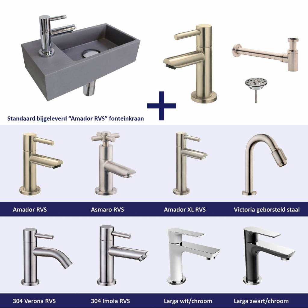 Fonteinen worden geleverd als ONE-PACK welk u een mooi prijsvoordeel oplevert. De ONE-PACK bestaat uit een fonteinkraan designsifon, niet afsluitbare fonteinplug en een bevestiging set.
