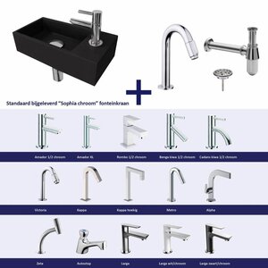 Fonteinen worden geleverd als ONE-PACK welk u een mooi prijsvoordeel oplevert. De ONE-PACK bestaat uit een fonteinkraan, designsifon, niet afsluitbare fonteinplug en een bevestiging set.