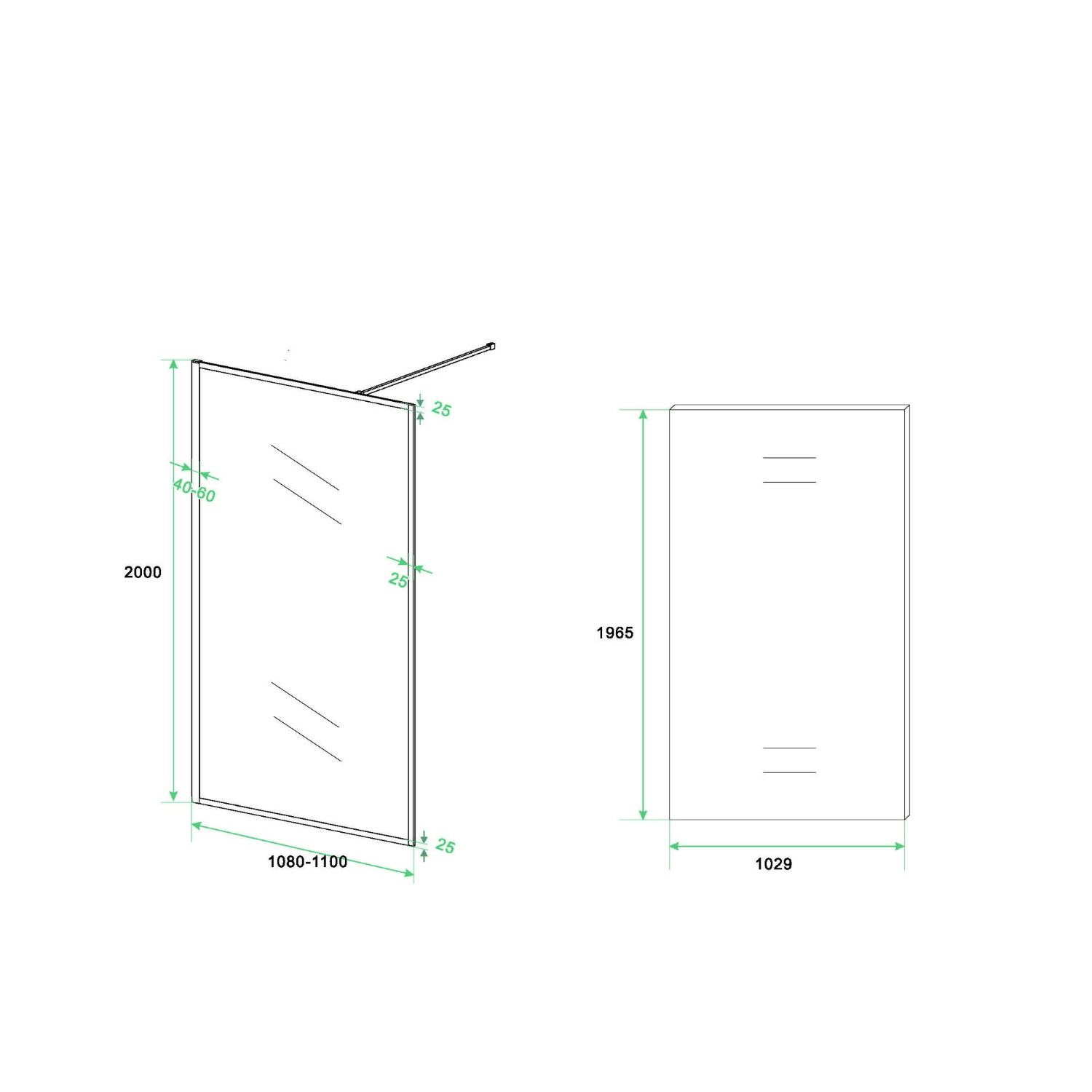 De inloopdouche heeft een breedte van 110 cm en een hoogte van 200 cm. Verder wordt de inloopdouche inclusief een mat zwarte stabilisatiestang met koppelstuk geleverd.