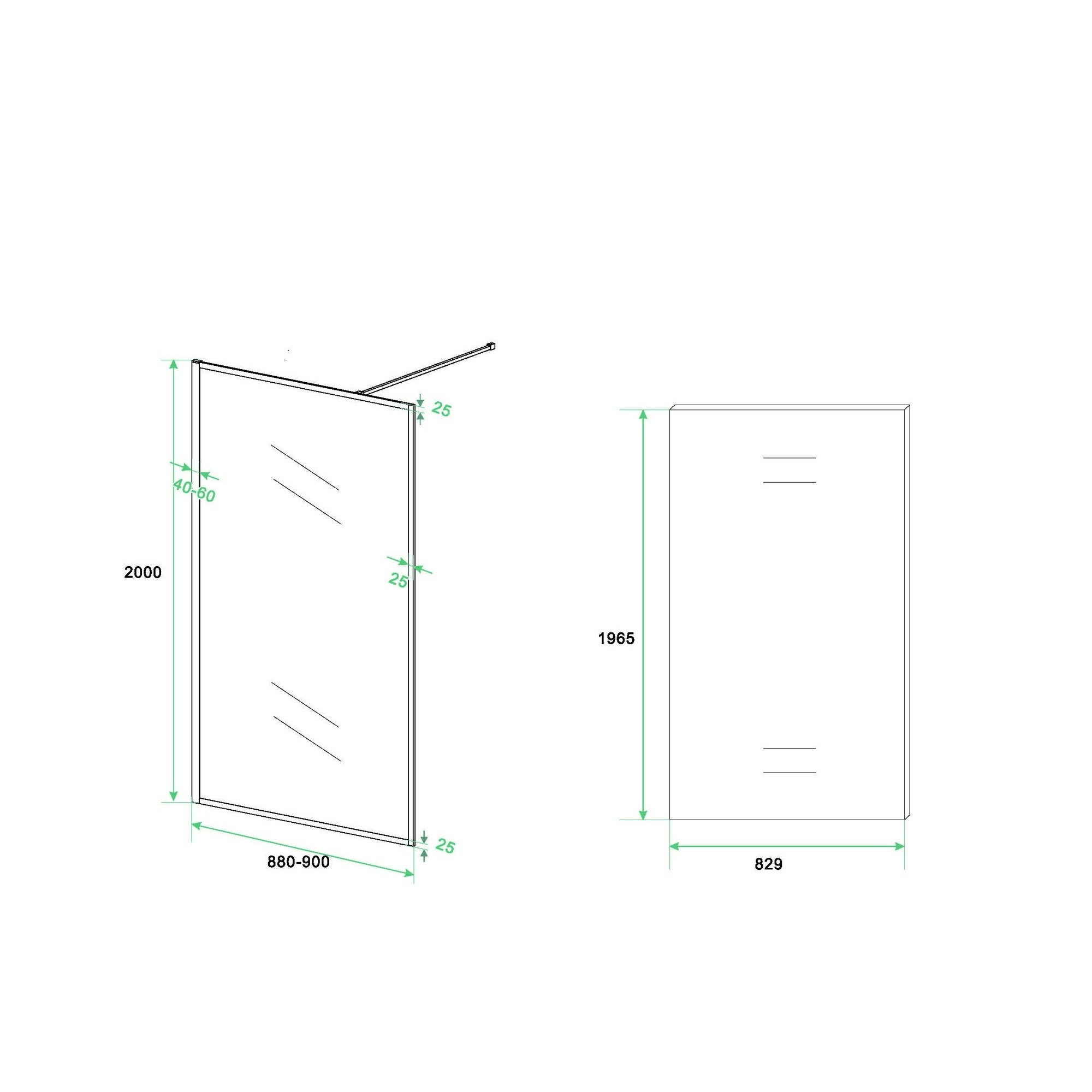De inloopdouche heeft een breedte van 90 cm en een hoogte van 200 cm. Verder wordt de inloopdouche inclusief een mat zwarte stabilisatiestang met koppelstuk geleverd.