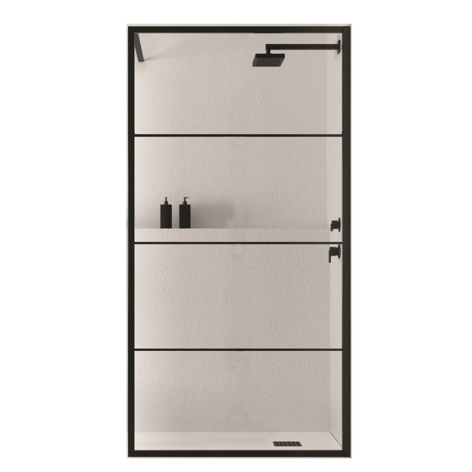 De inloopdouche beschikt over een heldere glasplaat en kent een glasdikte van 8 mm. De inloopdouche is voorzien van een mat-zwart raster en geeft daarmee een moderne en strakke uitstraling aan uw badkamer. De lijnen bevinden zich alleen op de buiten kant van het glas, zodat de binnen kant glad is. De inloopdouche is verkrijgbaar in de volgende maten: