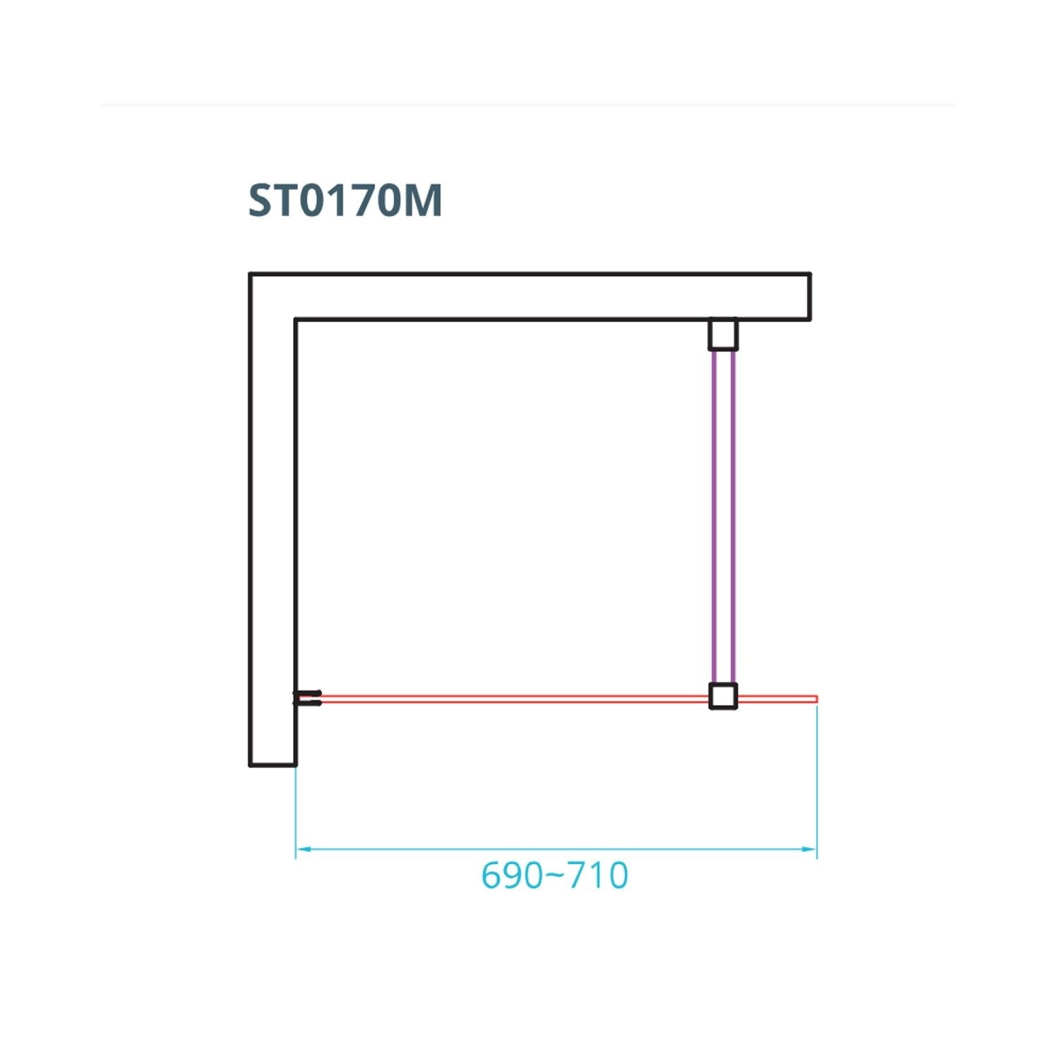 De inloopdouche is voorzien van een aluminium muurprofiel met een chromen afwerking en helder glas van 8 mm met glasbehandeling. De douchewand blijft stevig staan mede dankzij de chromen stabilisatiestang. De stabilisatiestang is gemaakt van roestvrij staal en wordt standaard met de douchewand meegeleverd. De inloopdouche heeft geen vloerbevestiging, waardoor u de wand na het plaatsen transparant kunt afkitten. De douchewand is 69 tot 71 cm breed en 200 cm hoog.