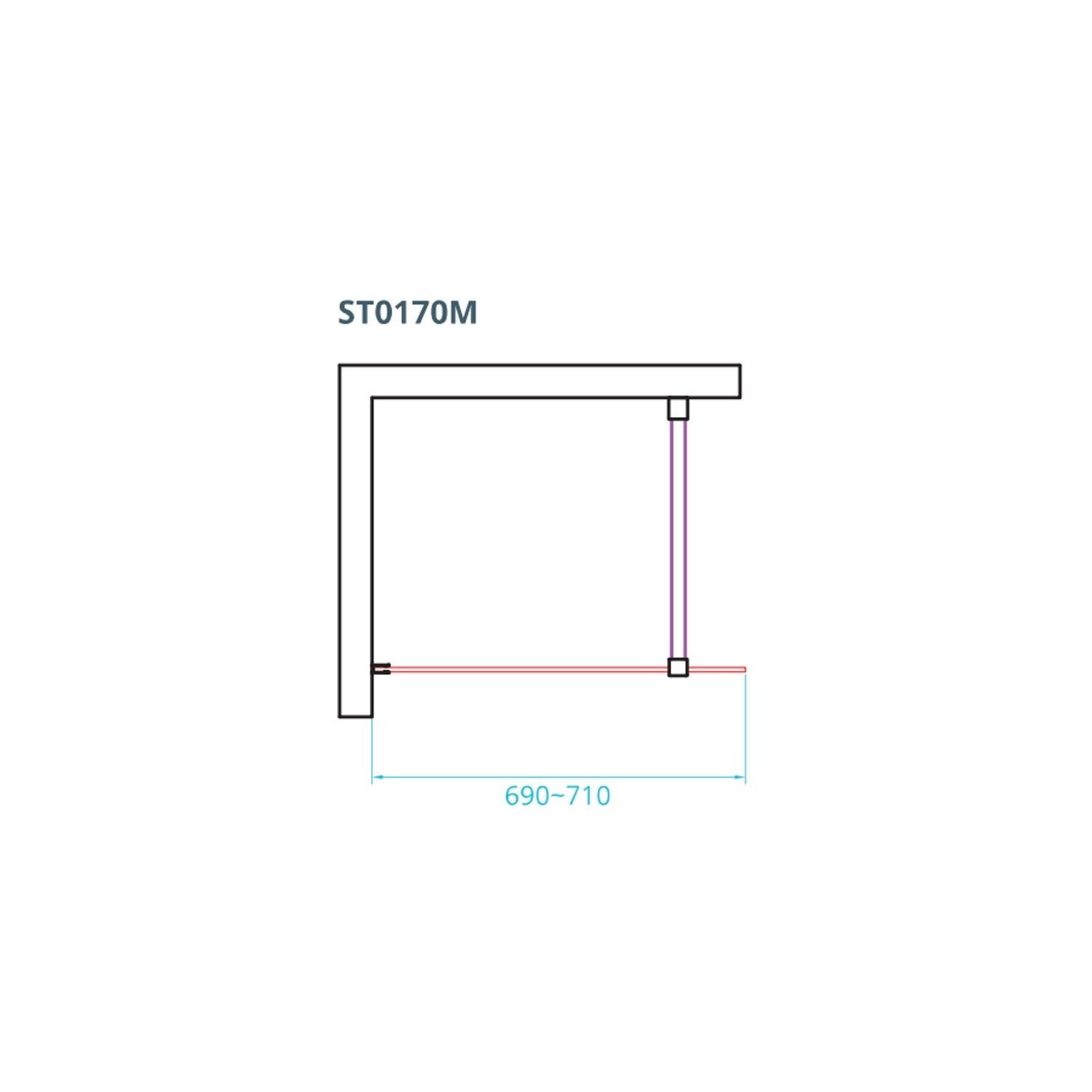 De inloopdouche is voorzien van een aluminium muurprofiel met een mat zwarte afwerking en helder glas van 8 mm met glasbehandeling. De douchewand blijft stevig staan mede dankzij de mat zwarte stabilisatiestang. De stabilisatiestang is gemaakt van roestvrij staal en wordt standaard met de douchewand meegeleverd. De inloopdouche heeft geen vloerbevestiging, waardoor u de wand na het plaatsen transparant kunt afkitten. De douchewand is 69 tot 71 cm breed en 200 cm hoog.