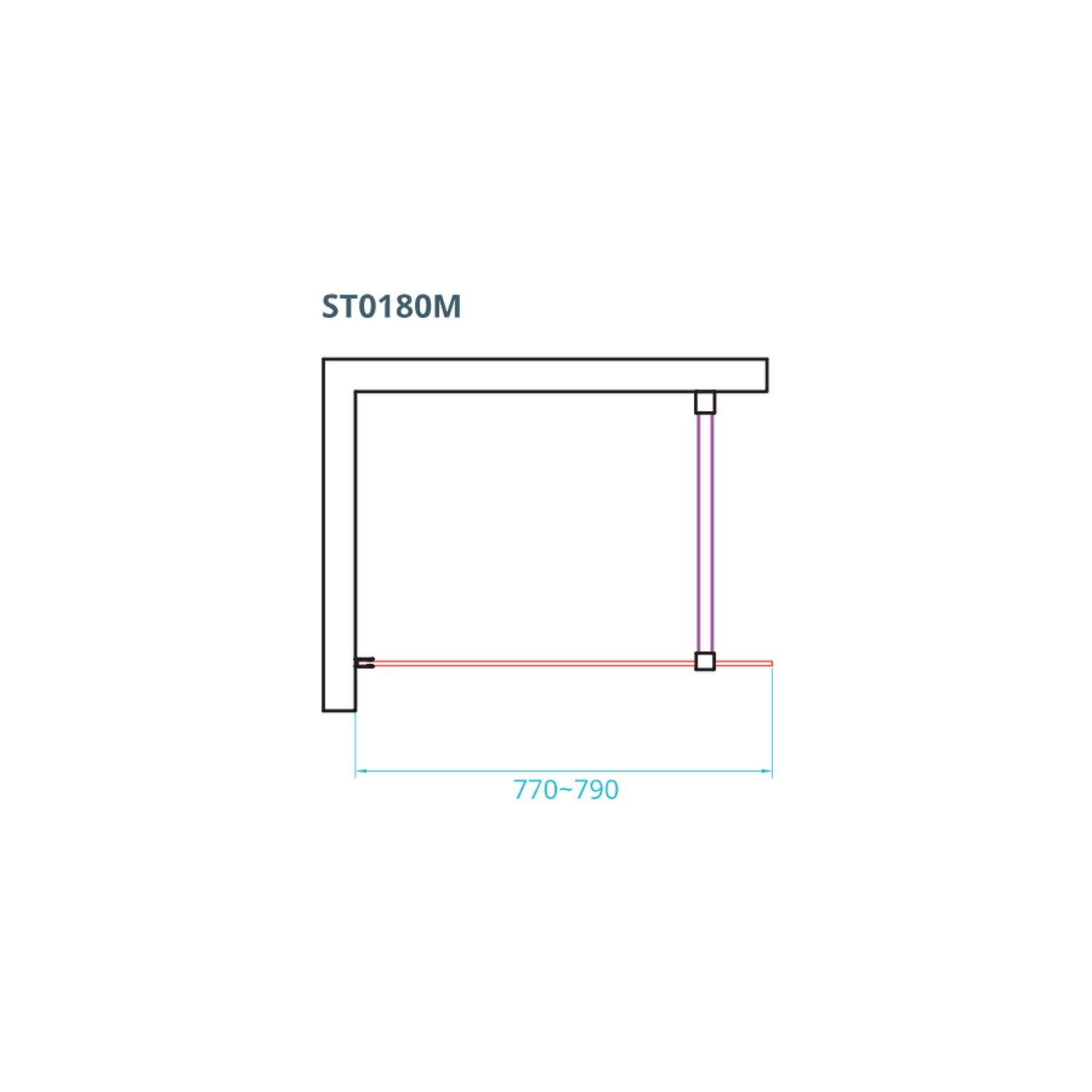 De inloopdouche is voorzien van een aluminium muurprofiel met een mat zwarte afwerking en helder glas van 8 mm met glasbehandeling. De douchewand blijft stevig staan mede dankzij de mat zwarte stabilisatiestang. De stabilisatiestang is gemaakt van roestvrij staal en wordt standaard met de douchewand meegeleverd. De inloopdouche heeft geen vloerbevestiging, waardoor u de wand na het plaatsen transparant kunt afkitten. De douchewand is 77 tot 79 cm breed en 200 cm hoog.