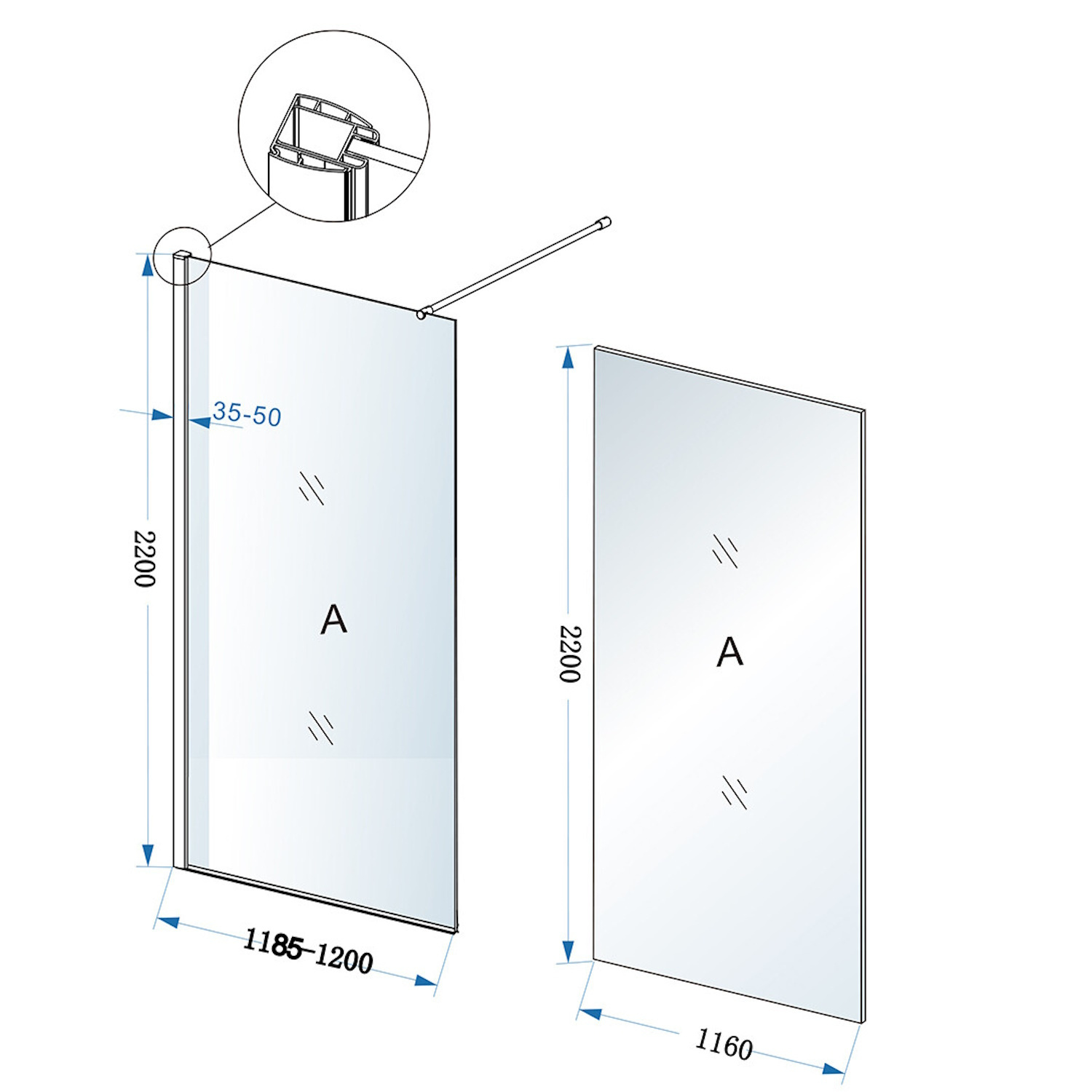 Bent u op zoek naar een inloopdouche voor in uw badkamer? Dan is deze inloopdouche van Wiesbaden uit de serie Eco echt iets voor u. De kleur van het profiel is chroom en het glas is helder met een nano coating waardoor water en kalk niet blijven hechten aan het glas. Hierdoor hoeft u hem minder vaak schoon te maken. De afmetingen zijn: 220 cm hoog, 120 cm breed en het glas is 8 mm dik. Door deze inloopdouche te plaatsen krijgt uw badkamer een moderne uitstraling.