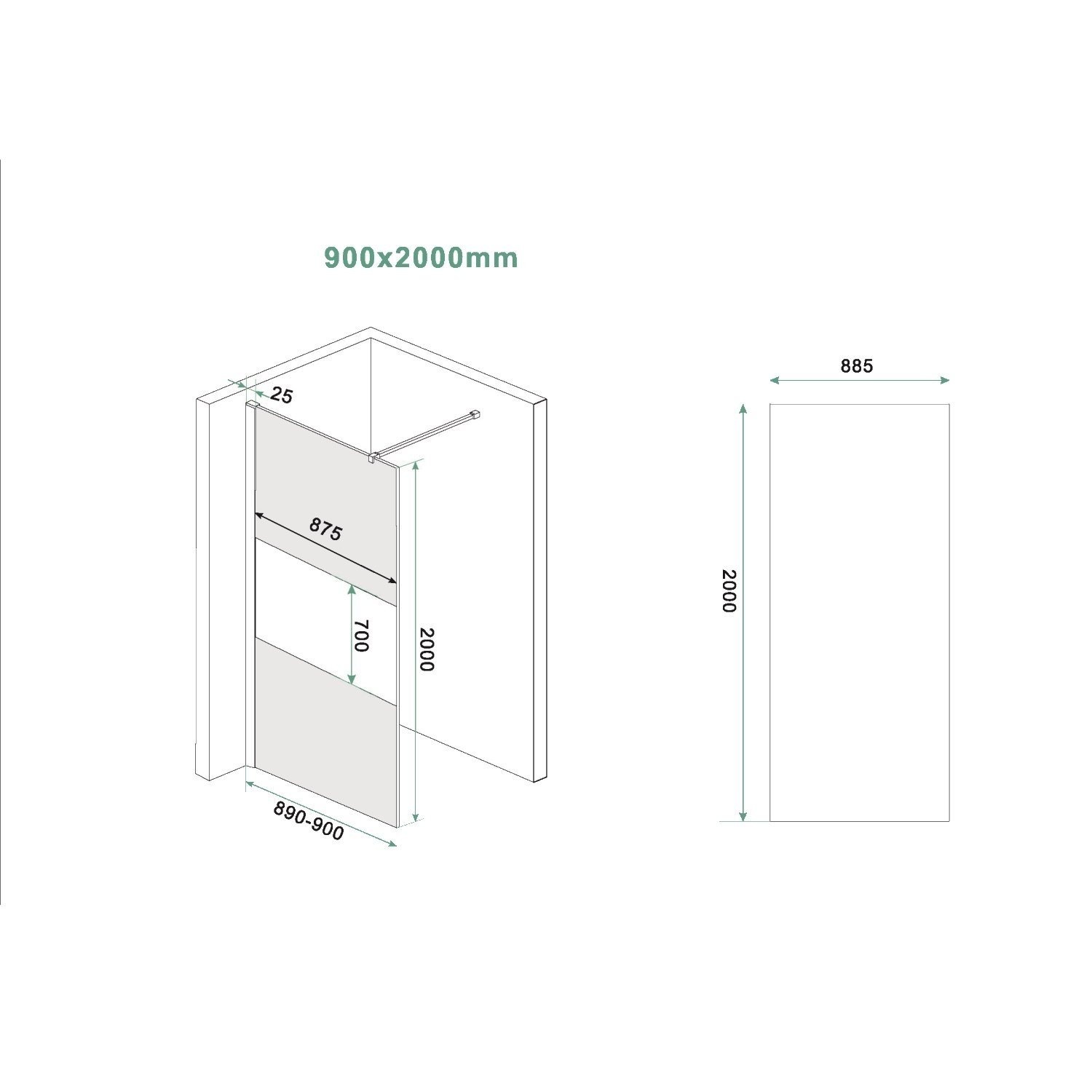 De douchecabine is voorzien 8mm dik veiligheidsglas. De douchewand heeft geen vloerbevestiging, waardoor u de wand direct na het plaatsen transparant kunt afkitten.