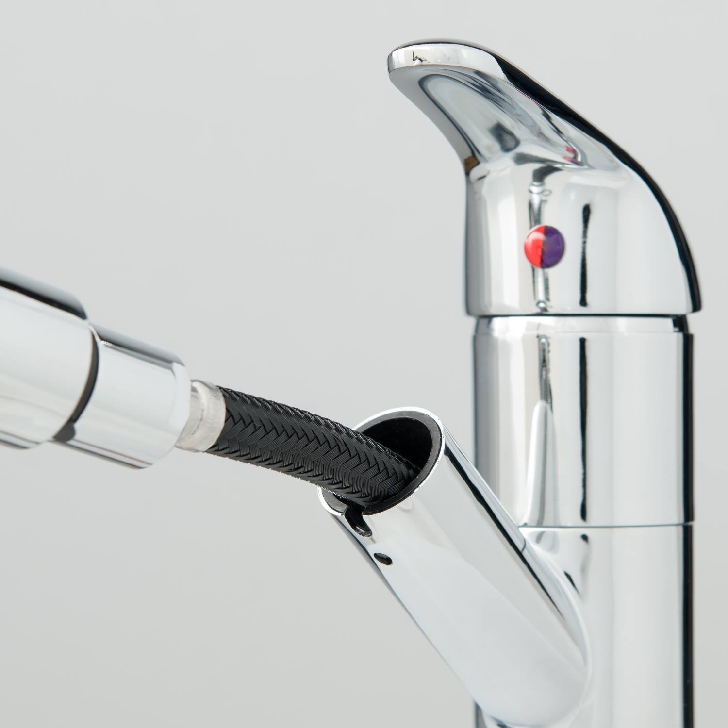 Tip: Sluit bij de aansluiting van de keukenkraan eerst de hoofdkraan van het waternet af. Om de mengkraan het best schoon te houden adviseren wij om dit te doen met een niet-agressief schoonmaakmiddel: zo behoudt de kraan de chroomkleur het beste.