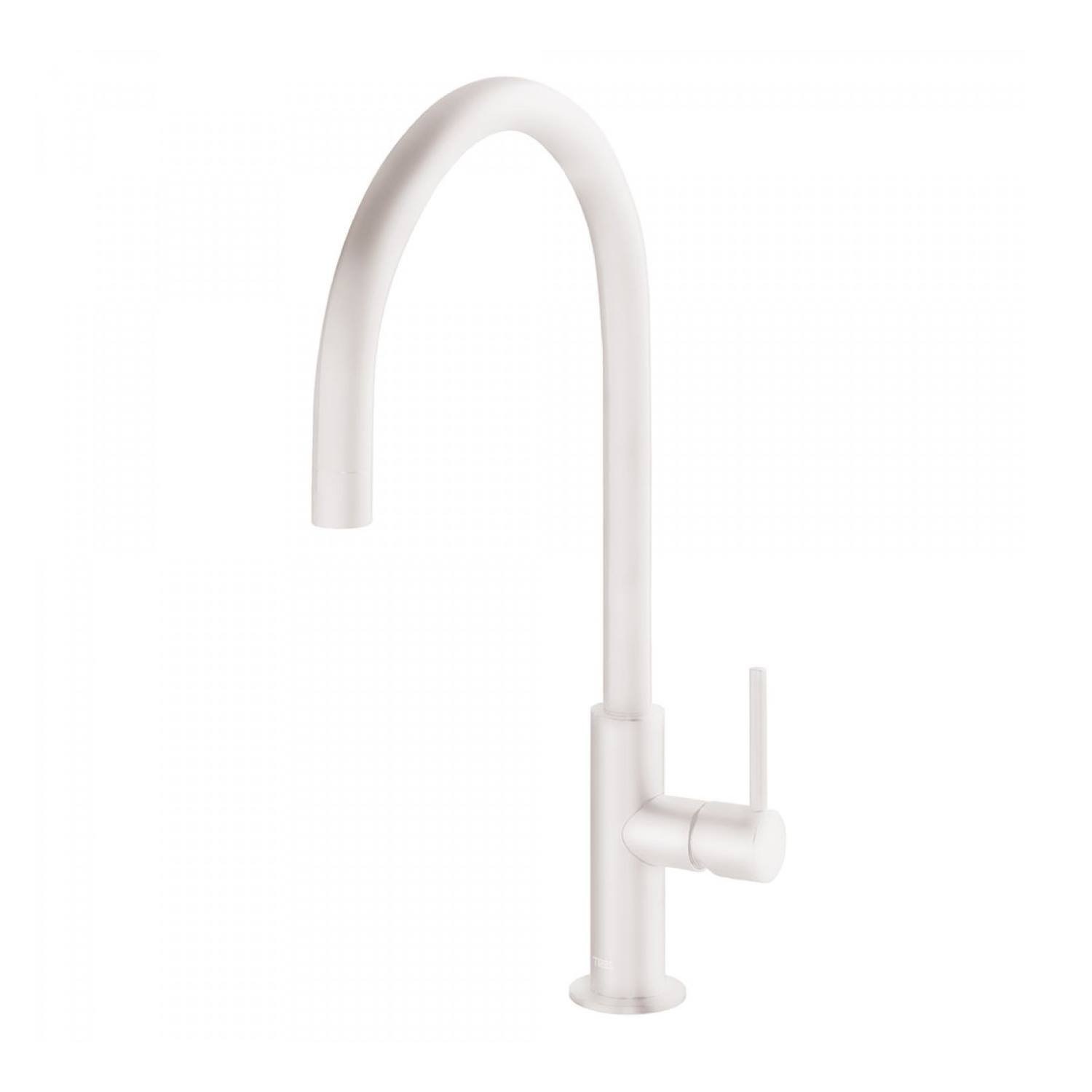 De kraan heeft een keramisch binnenwerk, dit houdt de hendel jarenlang soepel in zijn beweging om water door te laten en de kraan goed te sluiten. Deze praktische kraan is makkelijk te monteren en is afgewerkt in een mat witte kleur.