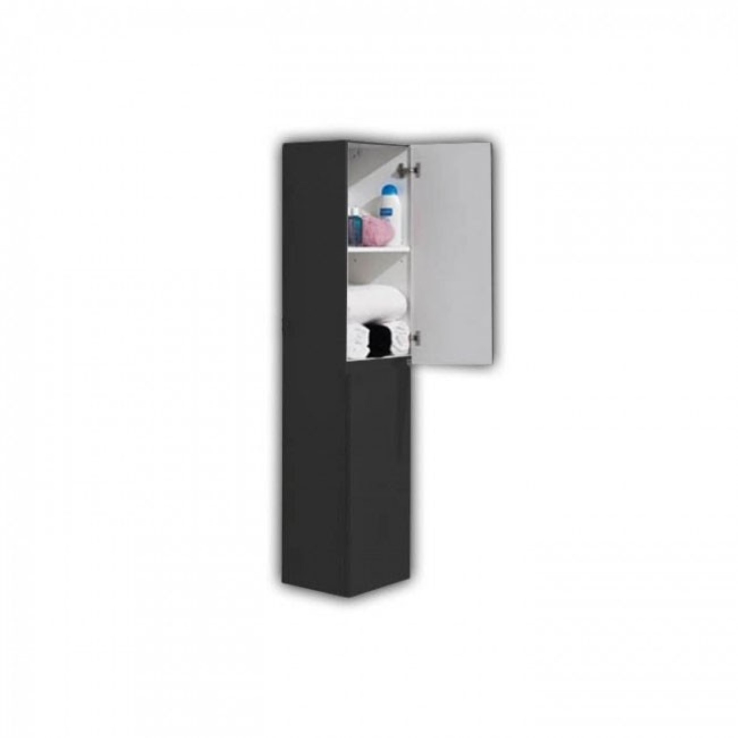 De afmetingen van de hoge kast zijn: 35x30x160 cm. De hoge kast is zowel links- als rechtsdraaiend te monteren.