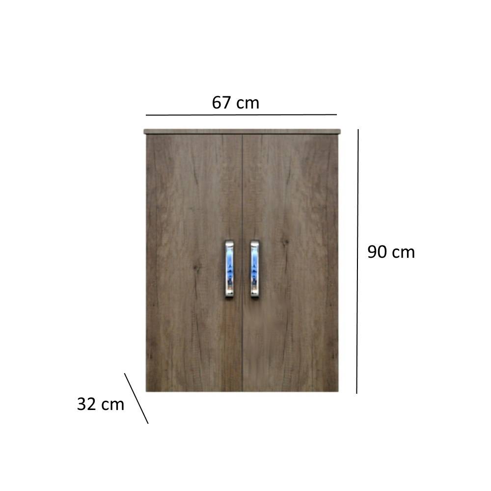 De kolomkast heeft een hoogte van 90 cm, een breedte van 67 cm en een diepte van 32 cm. De kast valt perfect te combineren met andere producten uit de Q9-, Q10en Q11-series van het merk Sanicare. De kolomkast is afgewerkt in de kleur schots-eiken.
