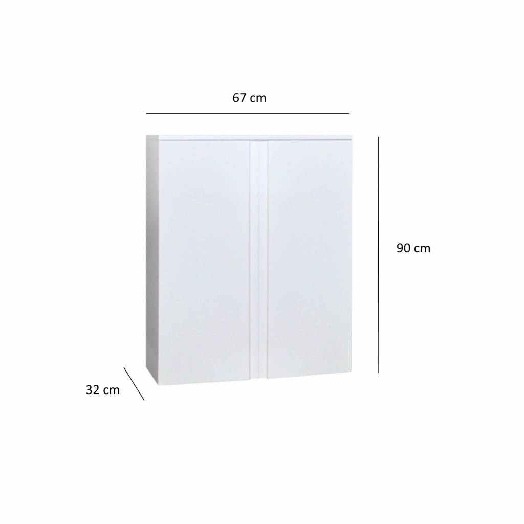 De kolomkast heeft een hoogte van 90 cm, een breedte van 67 cm en een diepte van 32 cm. De kast valt perfect te combineren met andere producten uit de Q7-serie van Sanicare. De kolomkast is afgewerkt in de kleur truffel.