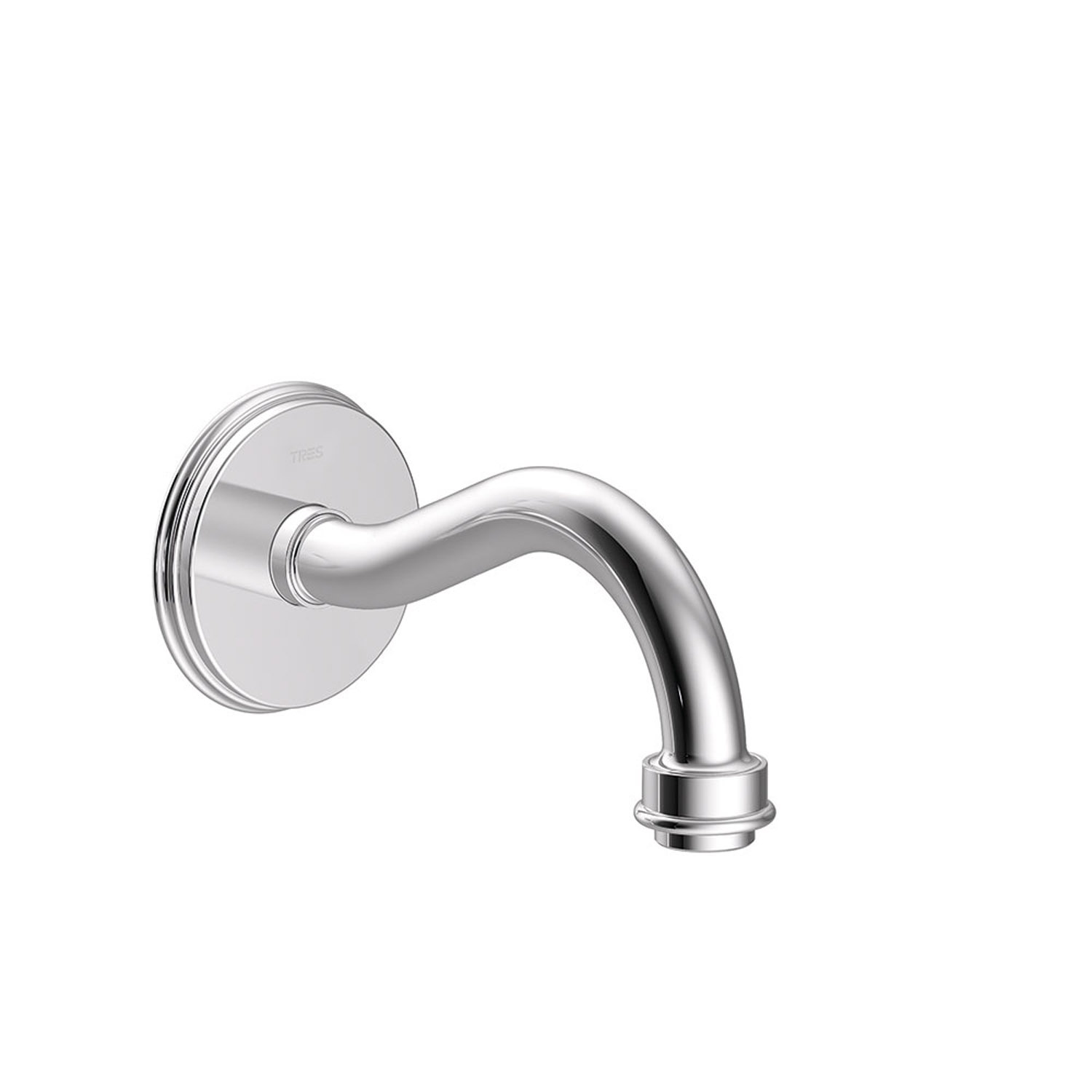 Deze kraanhals van de serie 'Clasic' van Tres heeft, zoals de serienaam al zegt een klassiek uiterlijk. De kraan is voor boven een wastafel en kan gecombineerd worden met een mooie greep of hendel. De kraan is elegant en speels door zijn gebogen uitloop. De kraan is gemaakt van messing met een Chroom look en een uitloop van 18,3 cm.