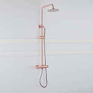 Opbouw Regendouche BWS Koper Compleet met Thermostaatkraan Geborsteld Koper