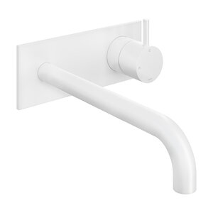 Inbouw Wastafelkraan Met Achterplaat Hotbath Cobber 25cm Gebogen Uitloop 1-Hendel Mat Wit