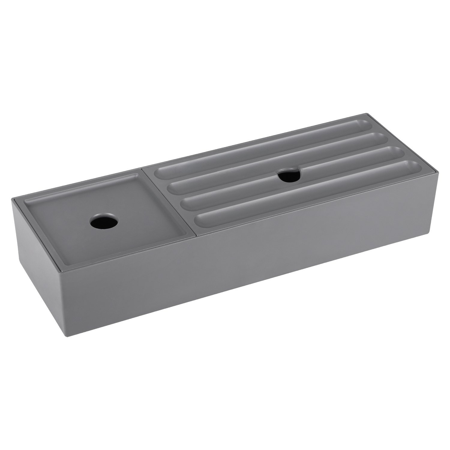 Een lade organizer bestaat vaak uit een element met meerdere bakjes die je in de la legt. Deze lade organizer heeft een afmeting van 32x11x6 cm en is grijs van kleur.