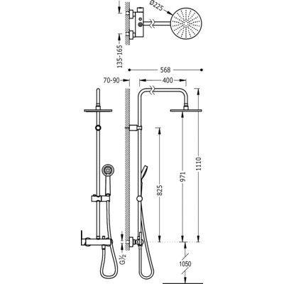 Lex Doucheset LEX · Hoofddouche Ø 225 mm. met gewricht. (299.632.01). · Massage Handdouche Ø 100 mm. (5 standen) (1.34.748).