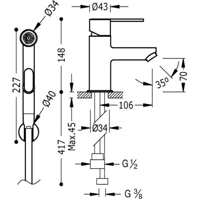 Lex Inbouw eenhendelkraan voor bidet Draaibare kraanhals. Satijn slang