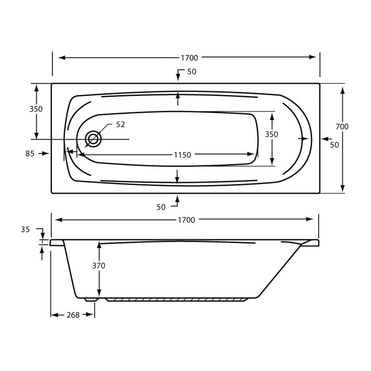 Het bad is 37 cm hoog, 70 cm breed en 170 cm lang. De binnenmaat is 115x35 cm. In het bad kan 130 liter water. Het materiaal van dit bad is acryl, wat veel voordelen heeft. Zo is acryl gemakkelijk schoon te houden, omdat er geen bacteriën aanhechten. Acryl is een soort kunststof wat warm aanvoelt, waardoor het water langer warm blijft en u dus langer kunt genieten van uw warme bad.