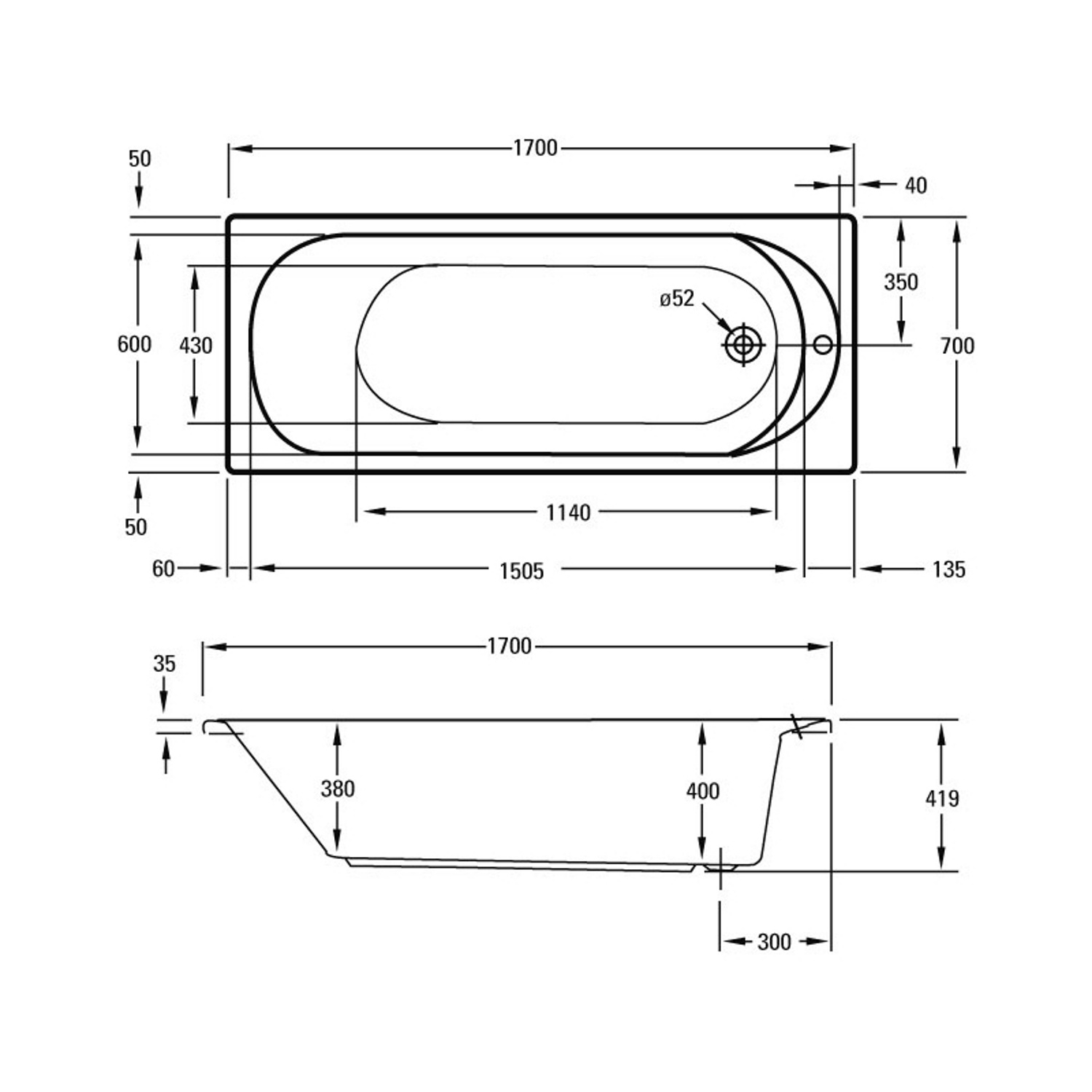 Dit solo ligbad zorgt voor ontspanning op ieder moment van de dag. Het bad past bij iedere badkamer, door het neutrale en tijdloze design. De lengte van het bad is 170 cm, de hoogte 41,9 cm en het bad is 70 cm breed. De binnenmaat is 150,5x60 cm.