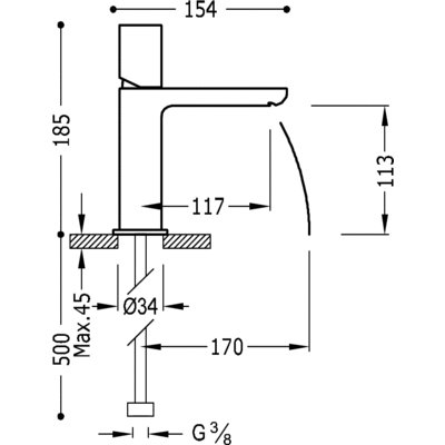Loft Wastafelmengkraan met waterval uitloop. \* OPMERKING: Kranen met een watervaluitloop worden geleverd met 2 instelkranen met filter (Nr.: 91.34.525)