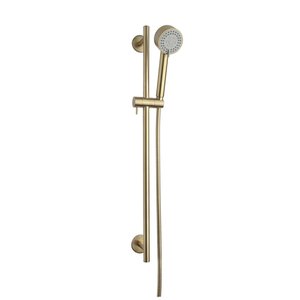 De Cadans glijstangset van het merk Wiesbaden is een uitstekend toevoeging aan uw doucheruimte. De elementen uit deze set zijn gemaakt van messing en hebben een afwerking in de kleur geborsteld messing. Naast een glijstang bestaat deze set ook uit een bijpassende doucheslang en handdouche. Dit artikel heeft een hoogte van 75 cm en een breedte van 12,2 cm. Met behulp van het standaard meegeleverde montagemateriaal is deze set eenvoudig te monteren!