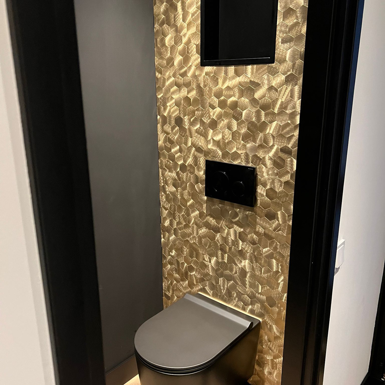 Geef uw ruimte gemakkelijk een nieuw uiterlijk met de zelfklevende mozaïek tegels van Isodeco. Deze tegelmatten hebben een afmeting van 29.0x28.0 cm en zijn 4 mm dik. De tegel bestaat uit hexagon steentjes met een metallic uiterlijk. De tegelmatjes bevatten goud tinten en zijn geschikt voor op de wand.