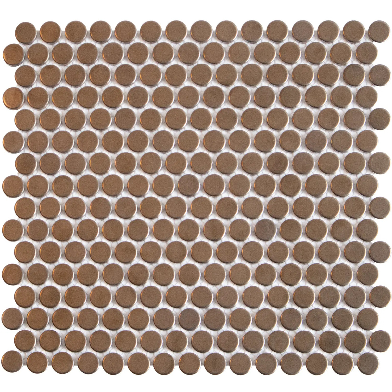 U heeft gekozen voor de stijlvolle mozaïek van The Mosaic Factory, deze behoort tot de Venice pennyround serie. De ronde mozaïek heeft een afmeting van 1.9x1.9 cm en een dikte van 0.5 cm. De tegels zijn afgewerkt in brons metallic. De Venice tegels zijn gemaakt van geglazuurde porselein en geeft hierdoor uw ruimte een mooi stijlvolle look.