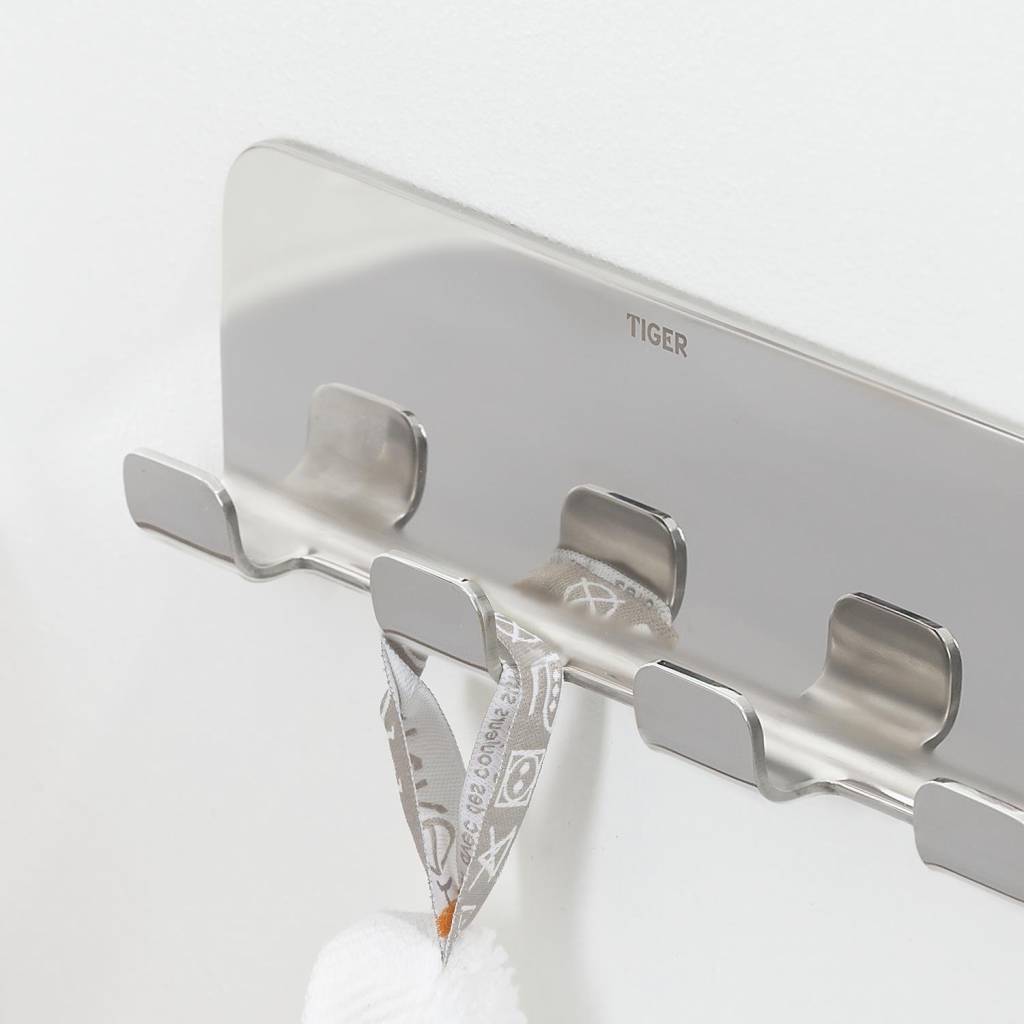 De multihaak uit de Colar serie van Tiger is uitgevoerd in gepolijst rvs. De haak is voorzien van een krachtige dubbelzijdige tape waardoor montage op iedere gladde, stevige ondergrond zeer eenvoudig is. De Colar serie bevat tevens een dubbele haak, maar ook een groot aantal aanvullende accessoires voor de badkamer en toiletruimte in dezelfde stijl.