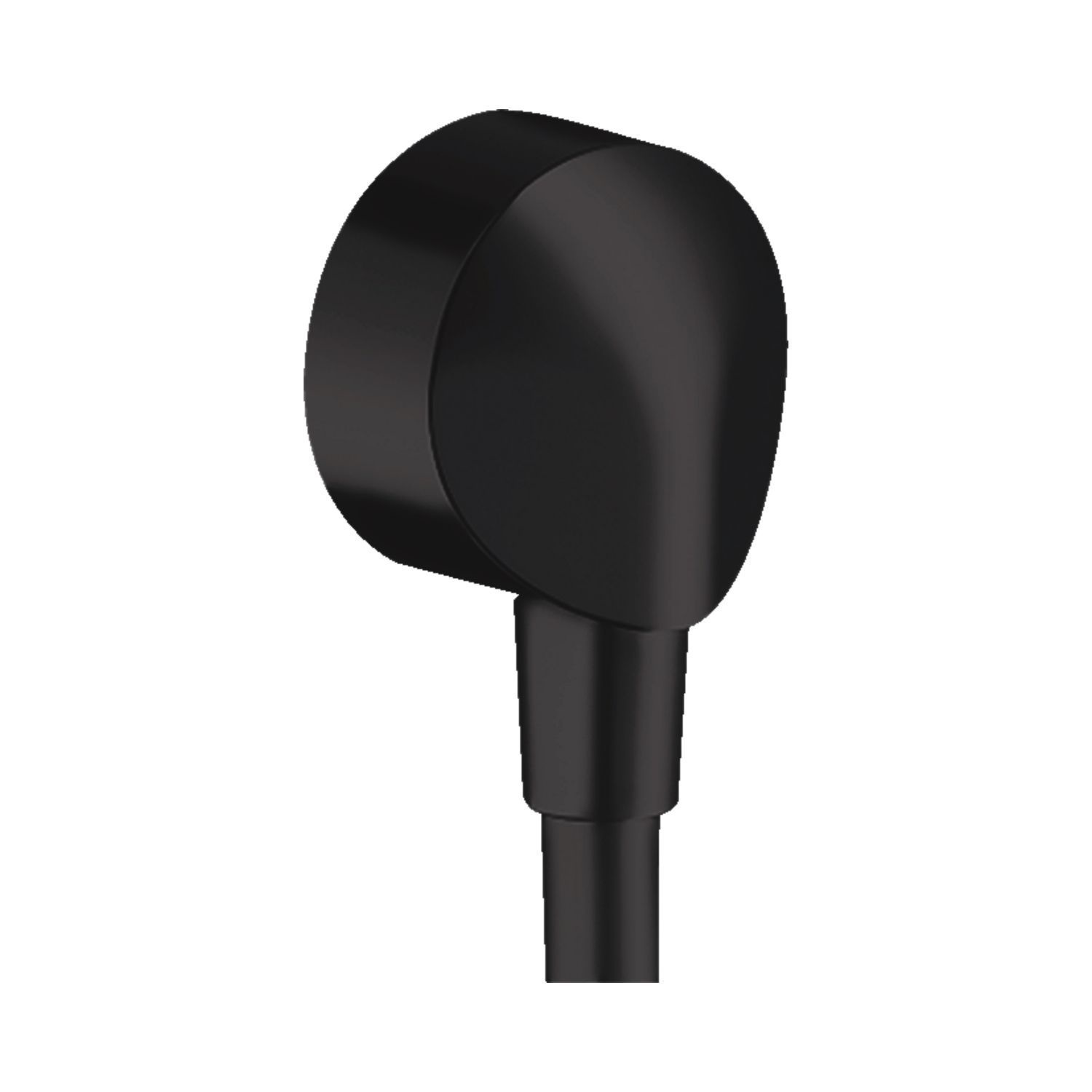 Werk uw inbouw douche stijlvol af met deze muuraansluitbocht. Deze muuraansluiting komt uit de FixFit collectie van Hansgrohe. Het heeft een ronde vorm en is afgewerkt in een mat zwarte kleur. De aansluitbocht is eenvoudig te bevestigen aan de muur. Deze aansluiting is geschikt voor een doucheslang met konische moer aan beide zijden. Het is gemaakt van metaal, dit zorgt ervoor dat het product jarenlang mee gaat. Deze aansluiting heeft geen terugslagklep.
