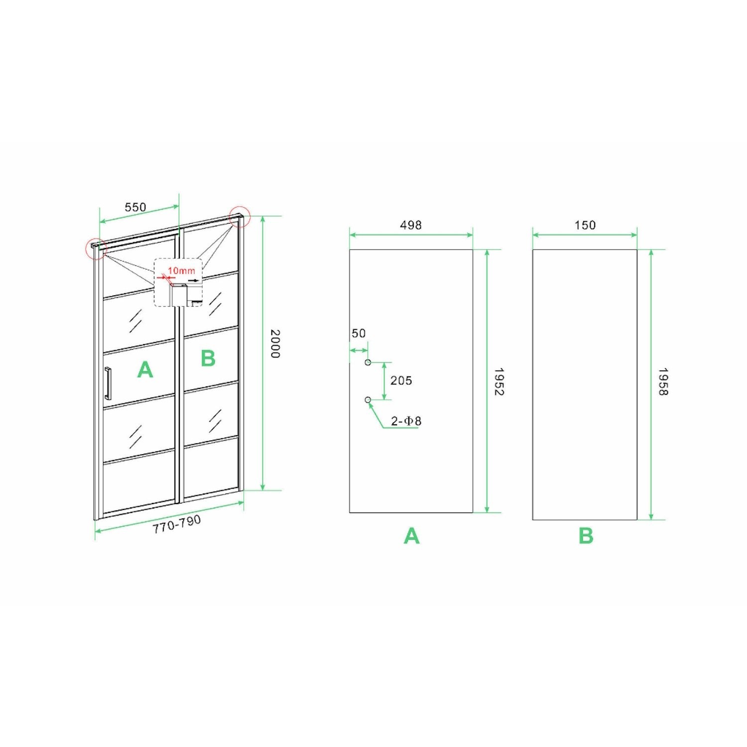 De deur zowel links als rechtsom te plaatsen, hierdoor is de wand in elke mogelijkheid toepasbaar.