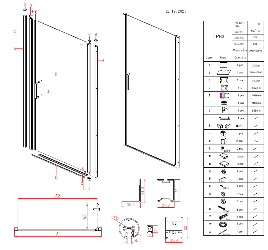 De afmetingen van de wand zijn 200 cm hoog en 70 cm breed. Daarnaast is de daadwerkelijke instapbreedte van de douche 56 cm. Deze nisdeur heeft een minimale maat van 66 cm en is door middel van het profiel uitbreidbaar tot 70 cm.