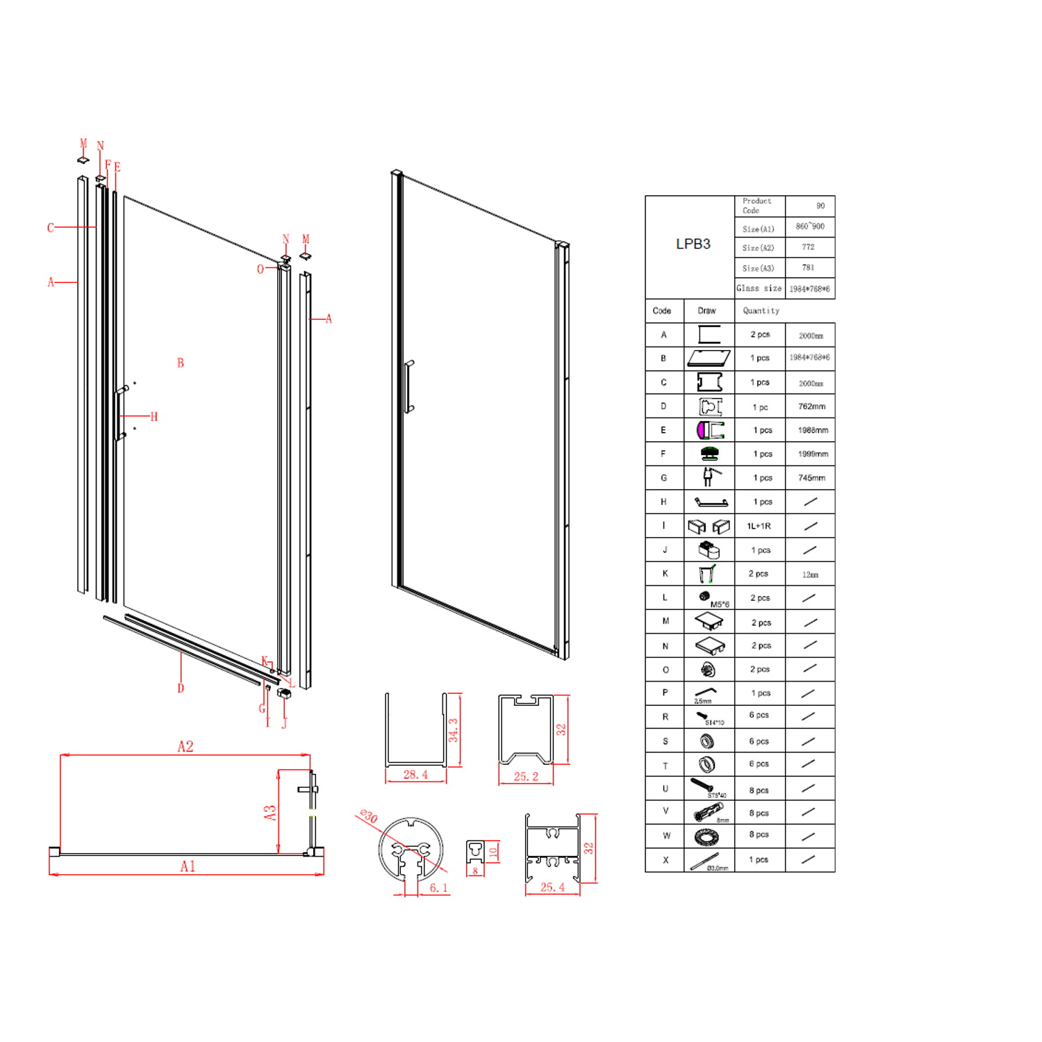 U kunt de douchedeur van 200 cm hoogte plaatsen met een het muurprofiel en stabilisatiestang. De deur is zowel links als rechtsom te plaatsen. Deze nisdeur heeft een minimale maat van 81 cm en is door middel van het profiel uitbreidbaar tot 85 cm.