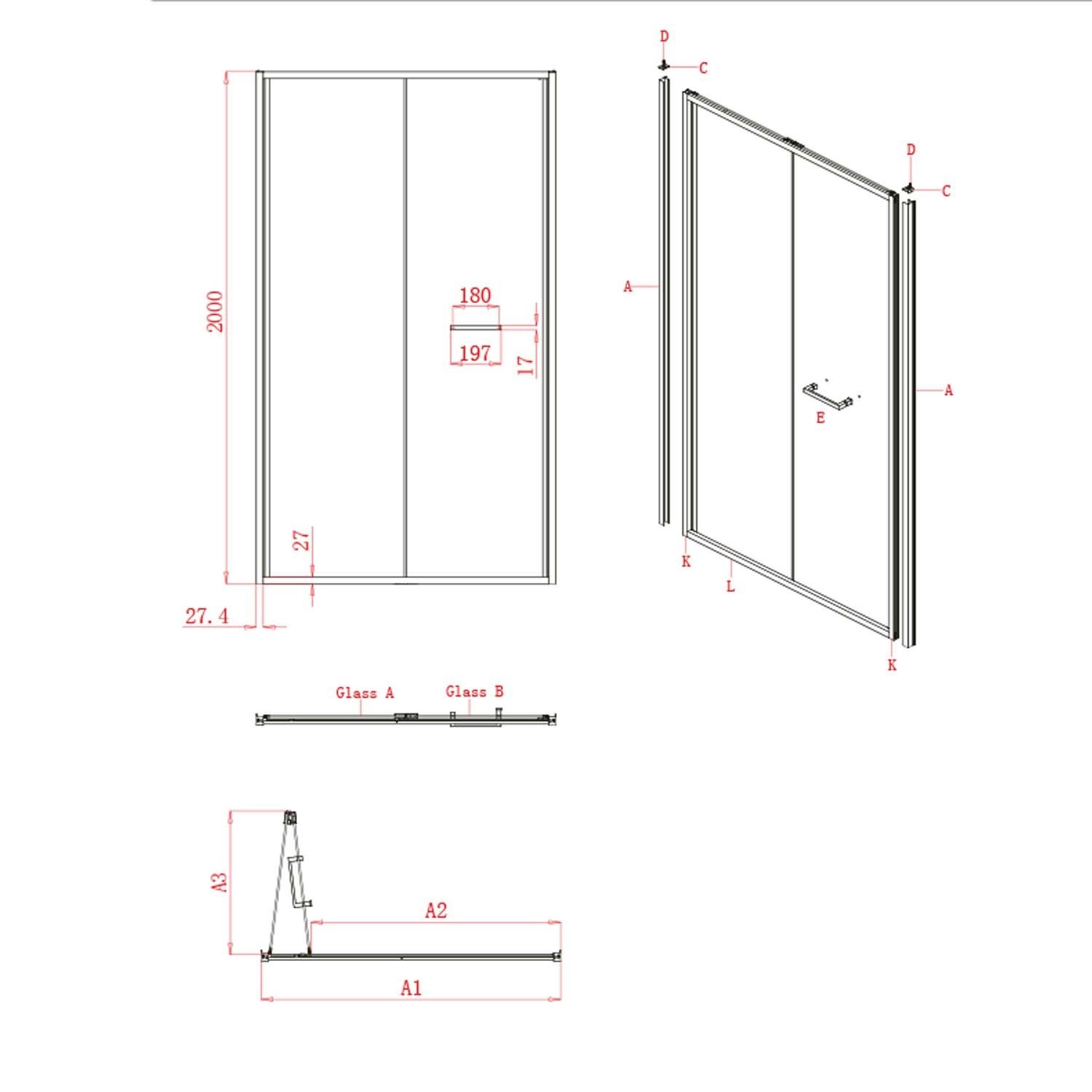 U kunt de douchedeur van 200 cm hoogte plaatsen met een het muurprofiel.
