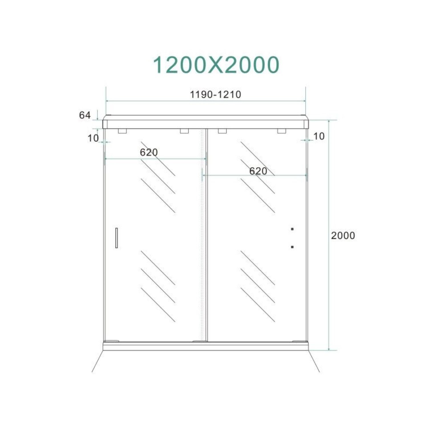 De douchedeuren hebben elk een breedte van 62 cm en een hoogte van 200 cm. De deuren zijn samen, naast elkaar, 124 cm breed. Het heldere glas kent een dikte van 8 mm en is voorzien van NANO Coating veiligheidsglas.