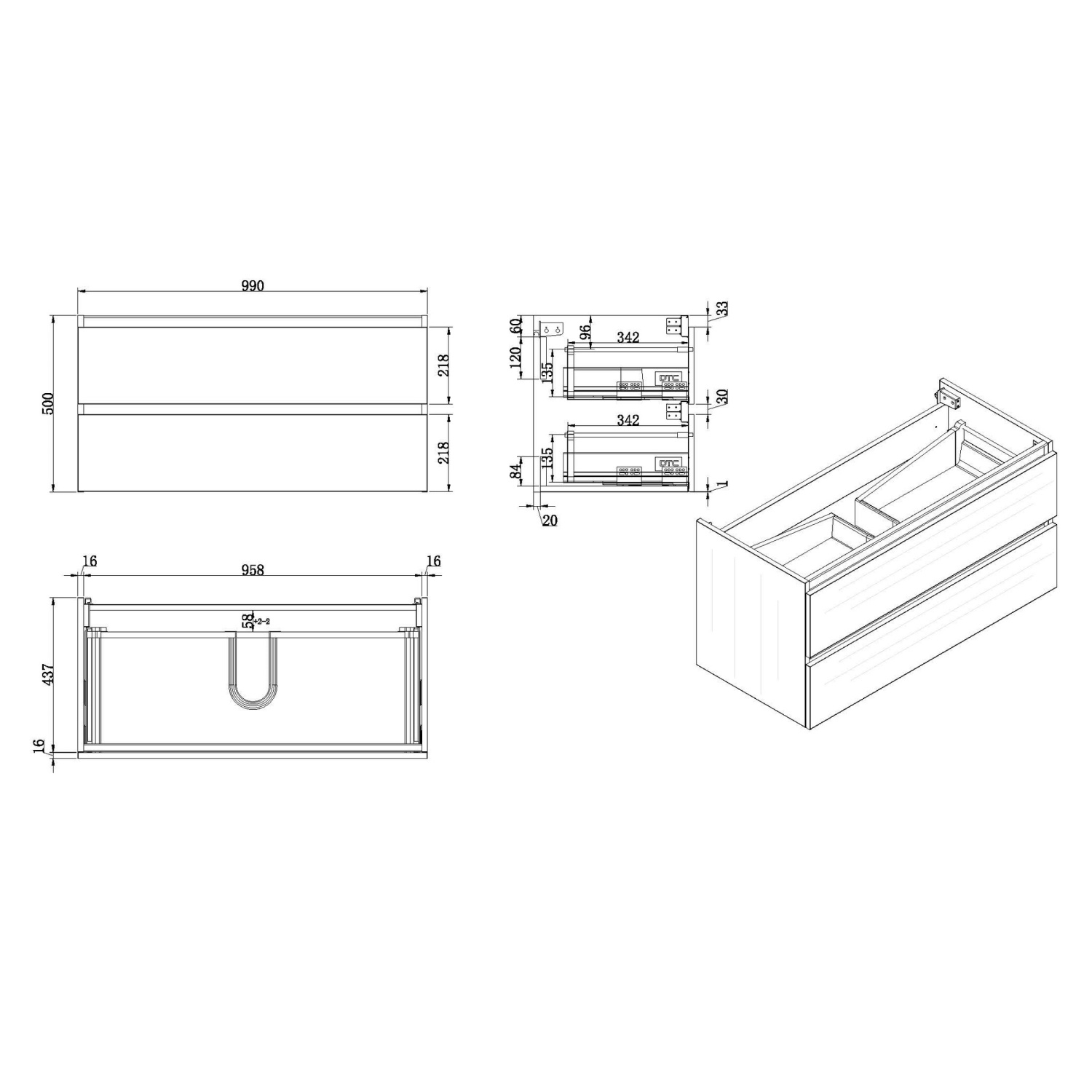 Let op! De Onderkast Aqua Splash Luna 100x47 Grey Oak (2 laden) wordt geleverd zonder wastafel. Deze dient apart besteld te worden!