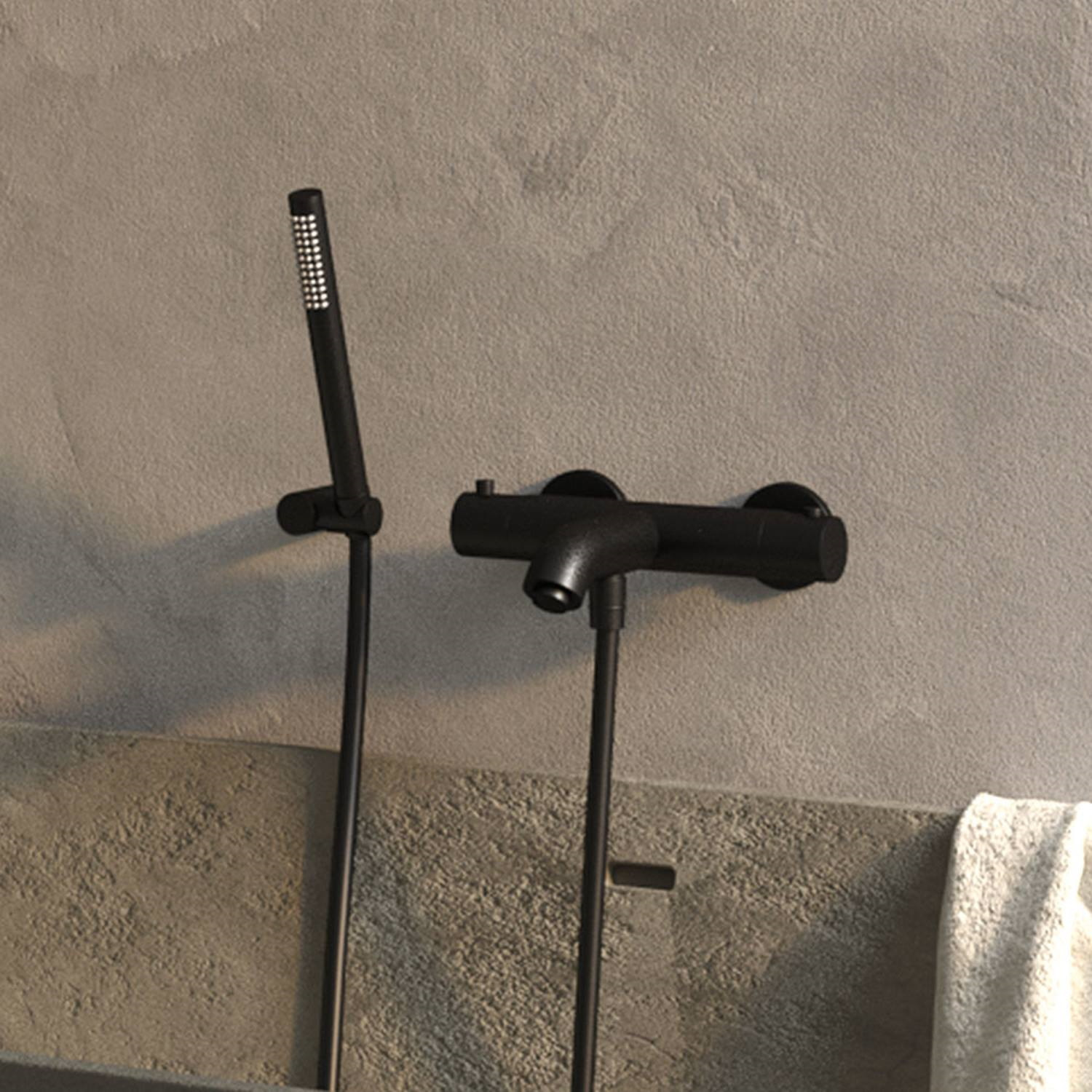 Deze bijzondere kraan van het merk Brauer behoort tot de Black serie en is een directe blikvanger in uw badkamer. De opbouw bad- en douchekraan is gemaakt van messing en kent een schitterende afwerking in de kleur mat zwart. De thermostatische kraan is uitgerust met een omstelmogelijkheid en is voorzien van twee knoppen waarmee u de temperatuur en de kracht van de waterstraal bepaalt. Aan de onderzijde is de kraan voorzien van een aansluitpunt waarop u een handdouche aan kunt sluiten.