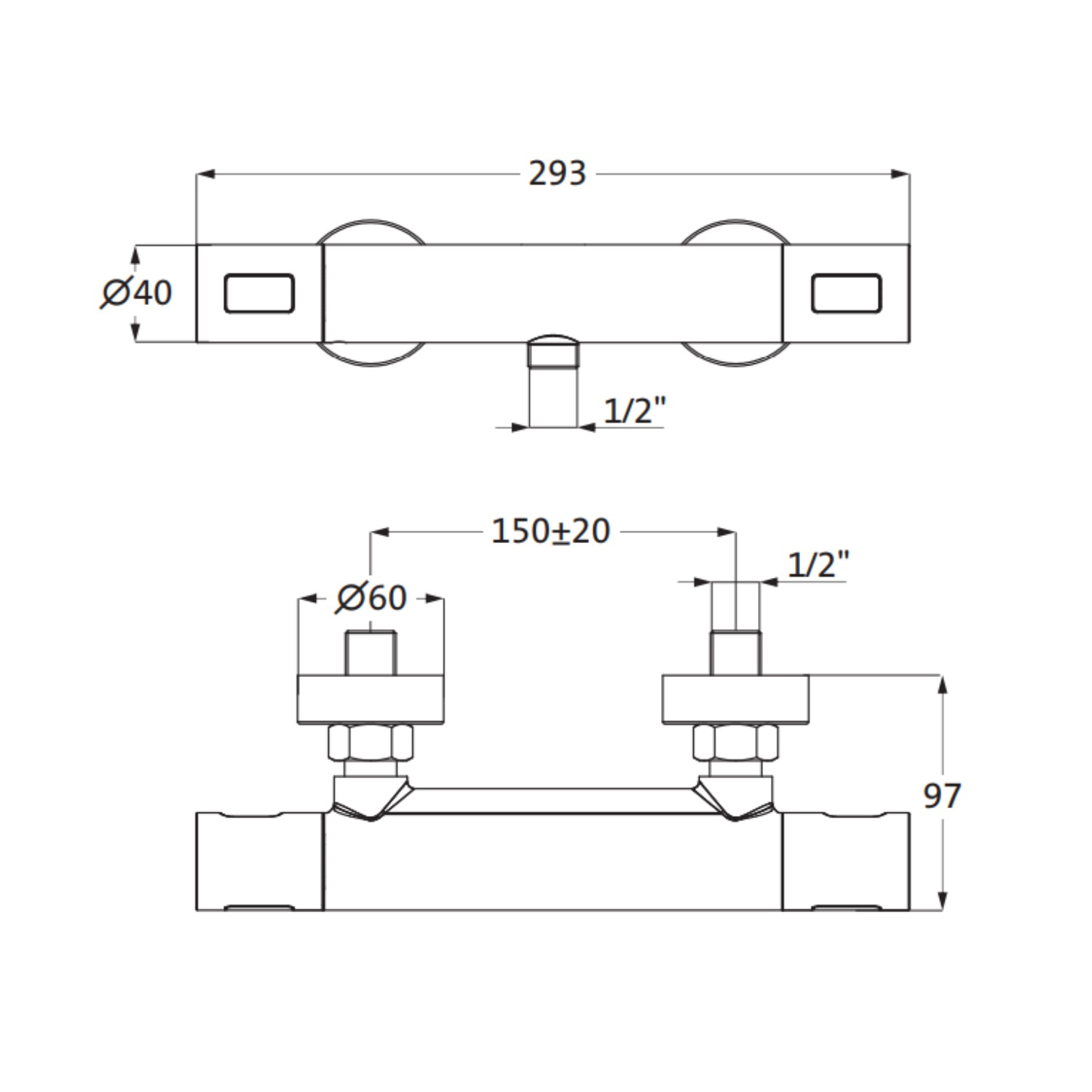 De doucheslang aansluiting is 1/2''. De douchekraan wordt bevestigd met schroefbare wand rozetten en is voorzien van een terugstroom beveiliging.