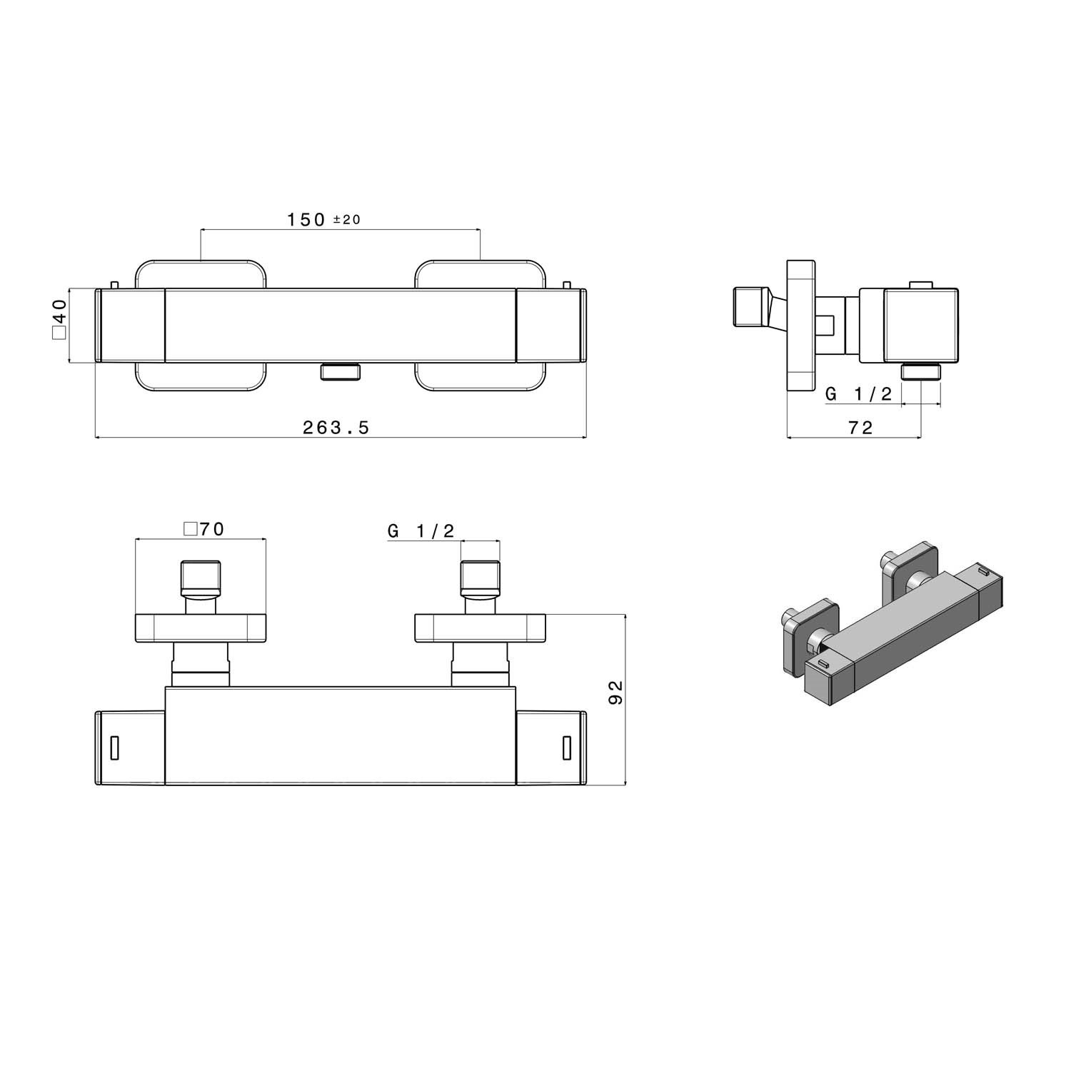 Bent u opzoek naar een thermostatische douchekraan met een strak design? Dan is deze mat zwarte douchekraan van de serie Dimy misschien wel iets voor u! De kraan is voorzien van twee knoppen. Met de één reguleert u de verandering van de temperatuur van het water. Met de andere knop bepaalt u de stroomsnelheid.